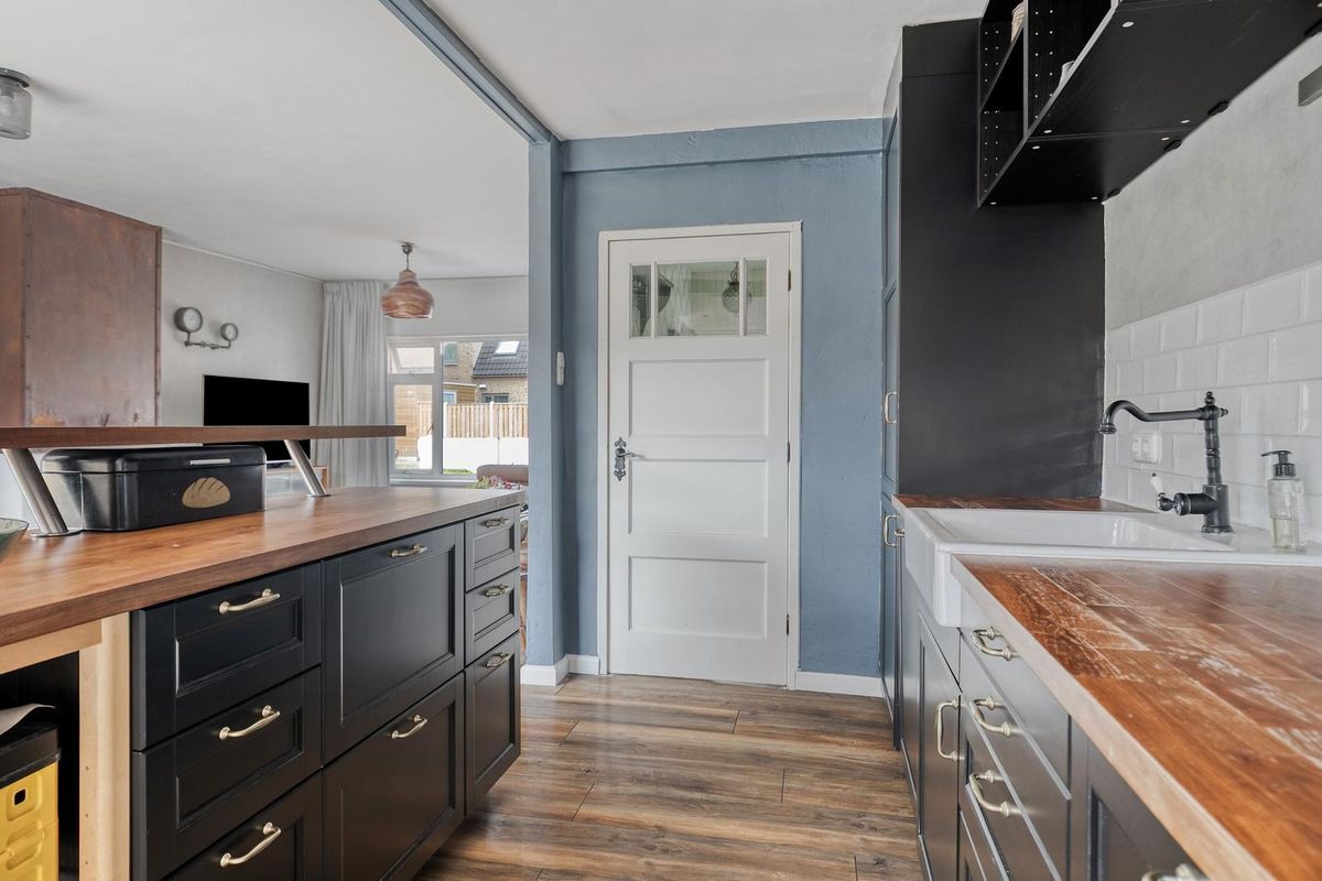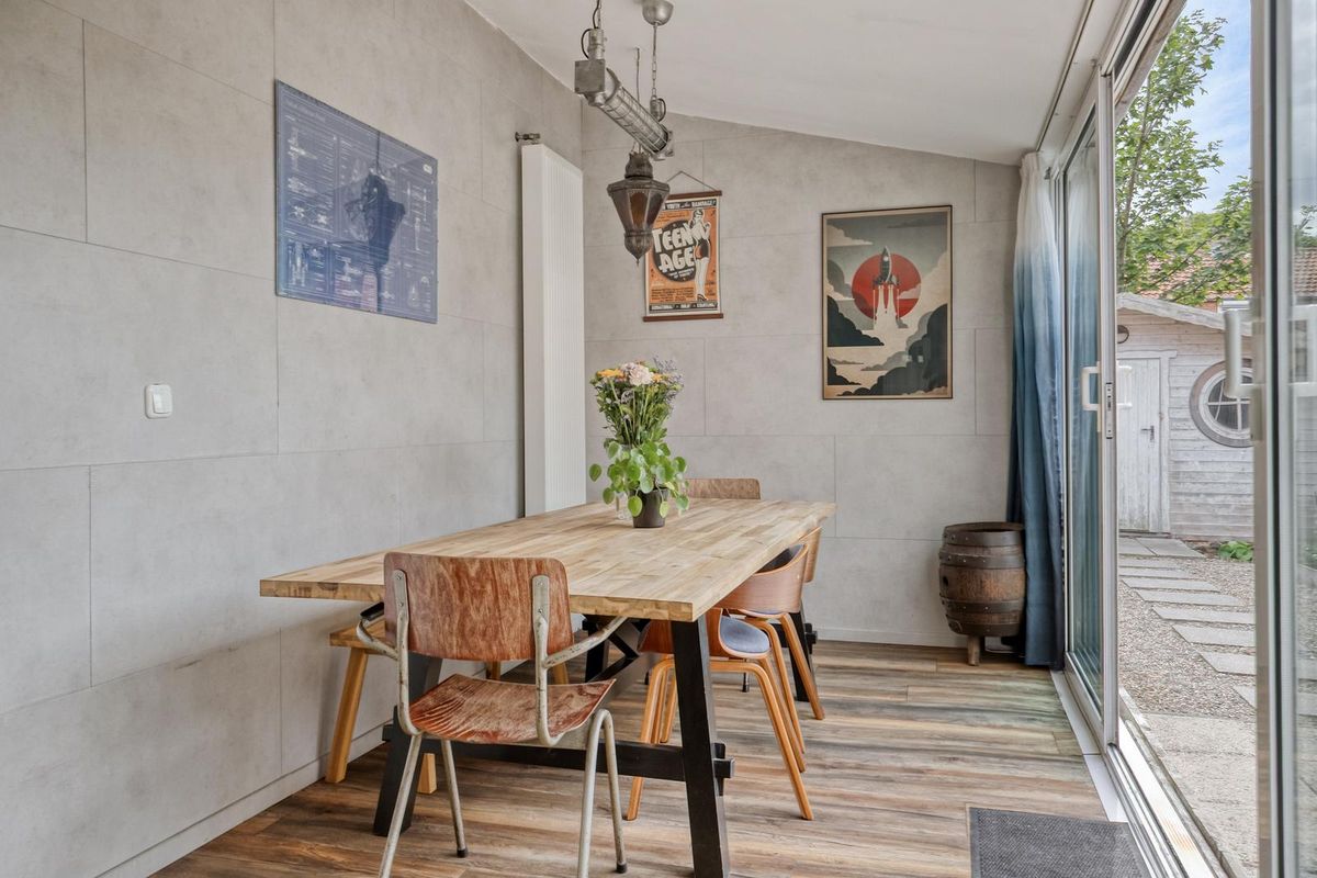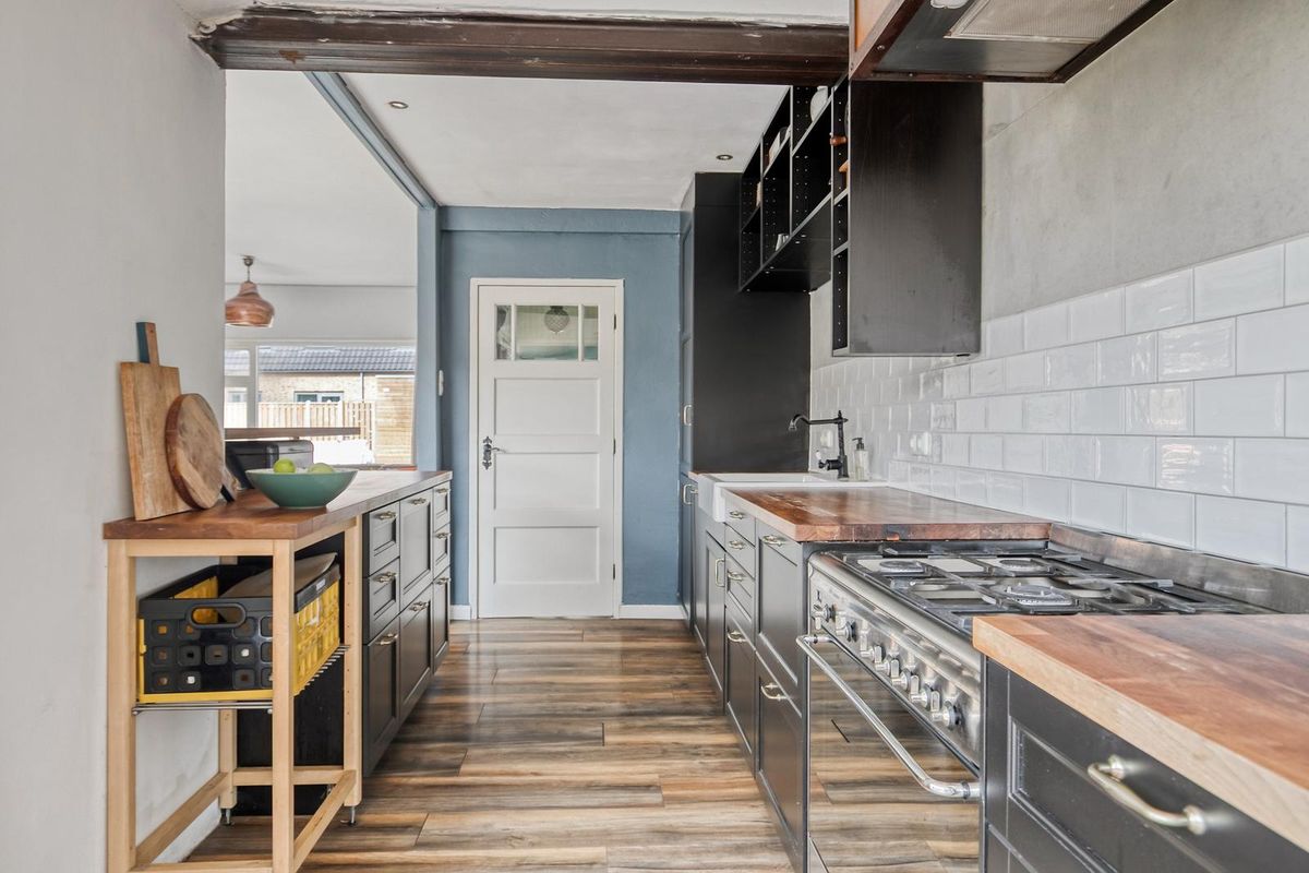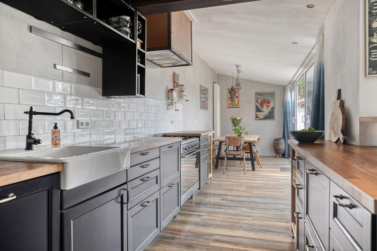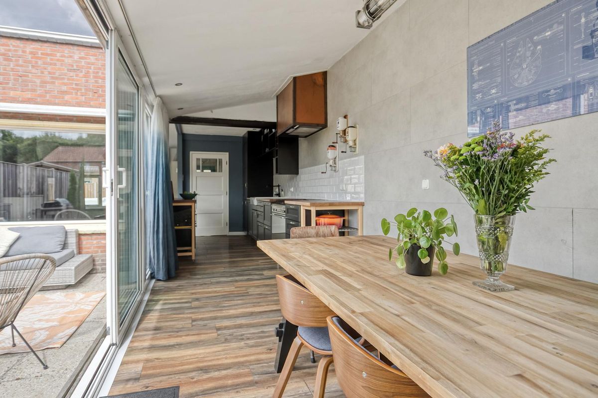 Bij binnenkomst in de hal tref je direct het toilet en de toegang tot de keuken. De open keuken is ruim opgezet en compleet uitgerust met een 5-pits gasfornuis, vaatwasser, koelkast, vriezer en volop kastruimte. Aansluitend is er voldoende plek voor een grote eettafel, perfect voor gezellige etentjes met familie of vrienden. Via de schuifpui stap je zo de tuin in.