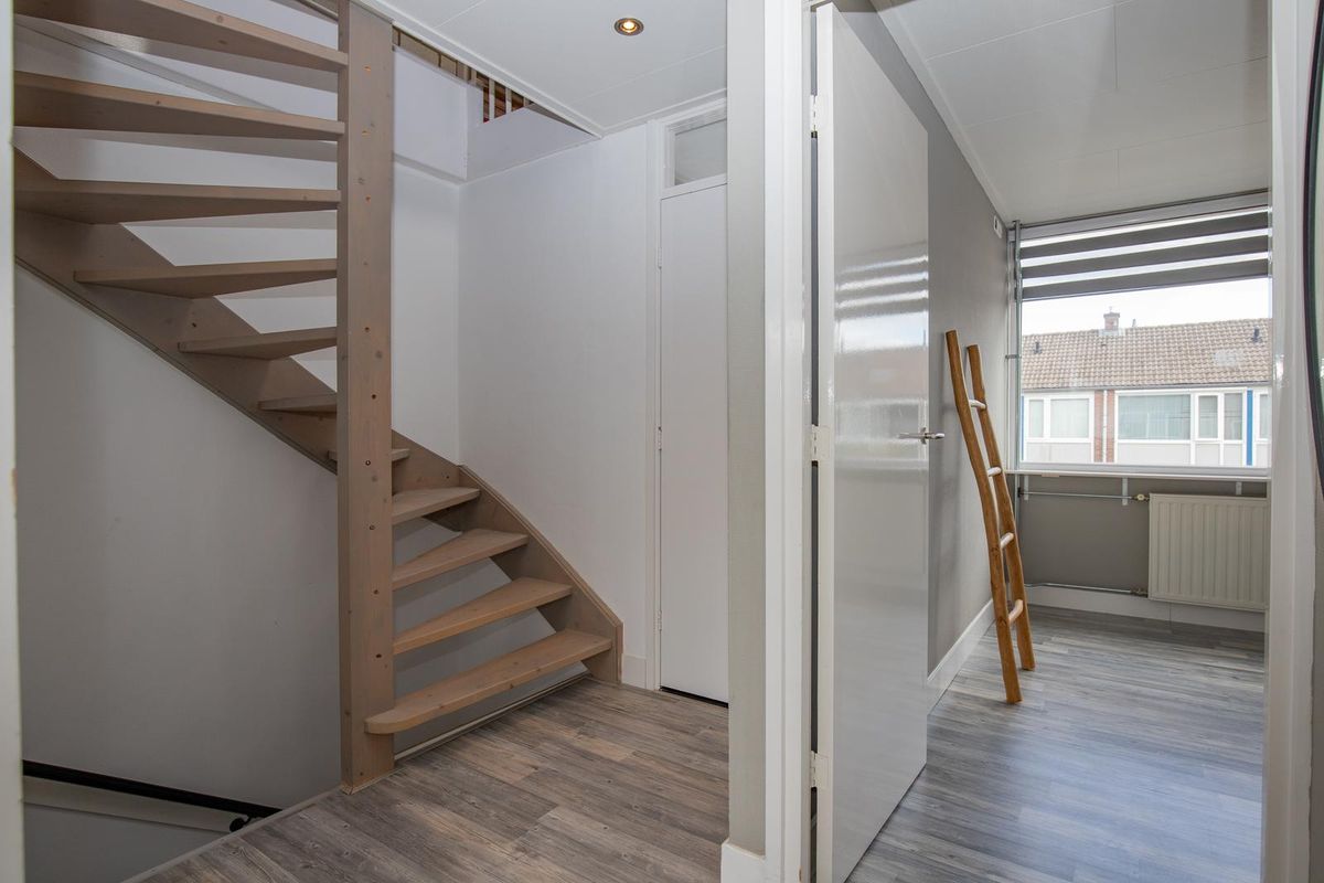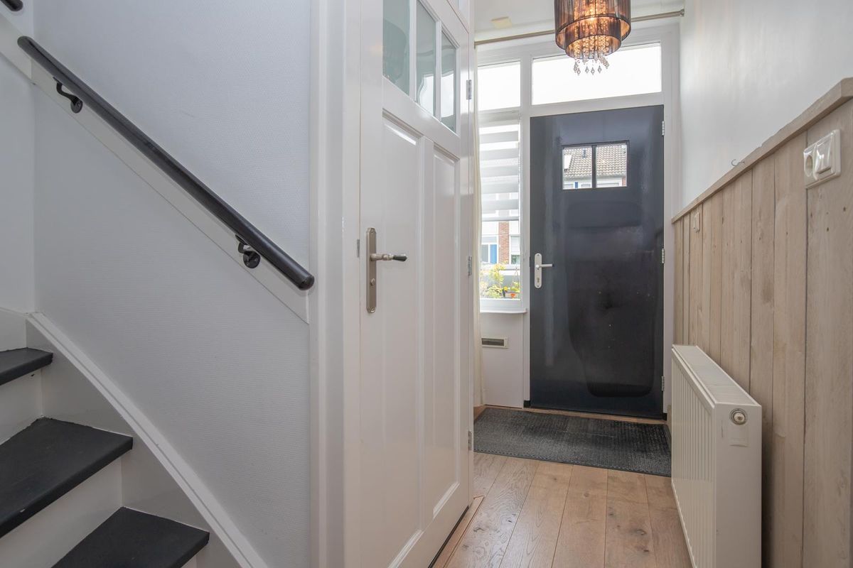 Entree met garderobe, moderne toiletruimte met vrijhangend toilet, trapkast met vernieuwde meterkast, doorzonwoonkamer, open keuken. Met uitgebouwde bijkeuken!