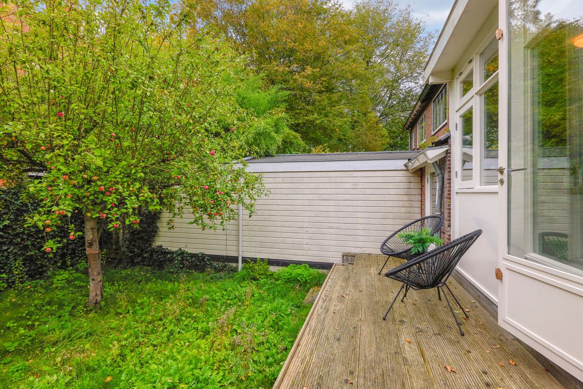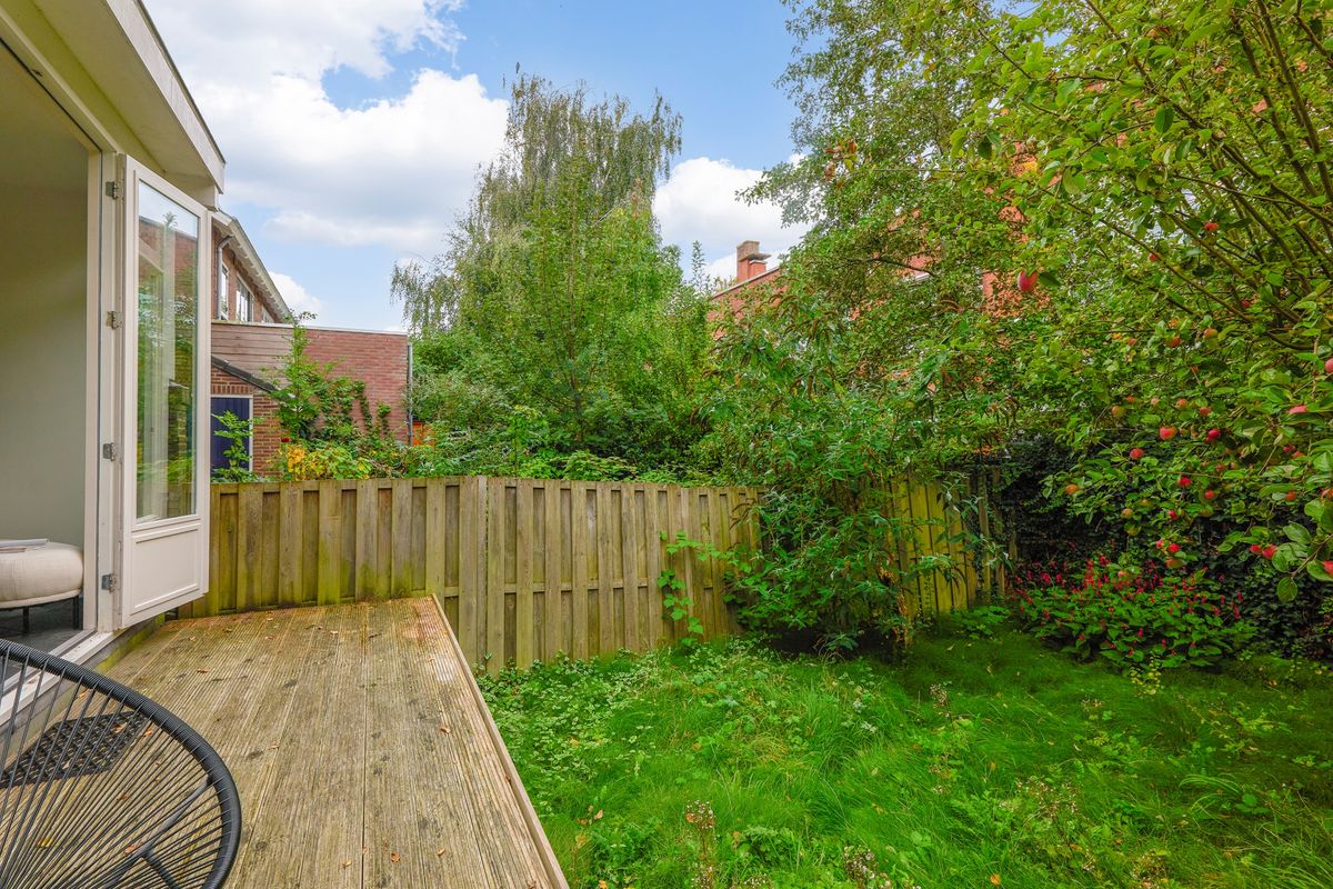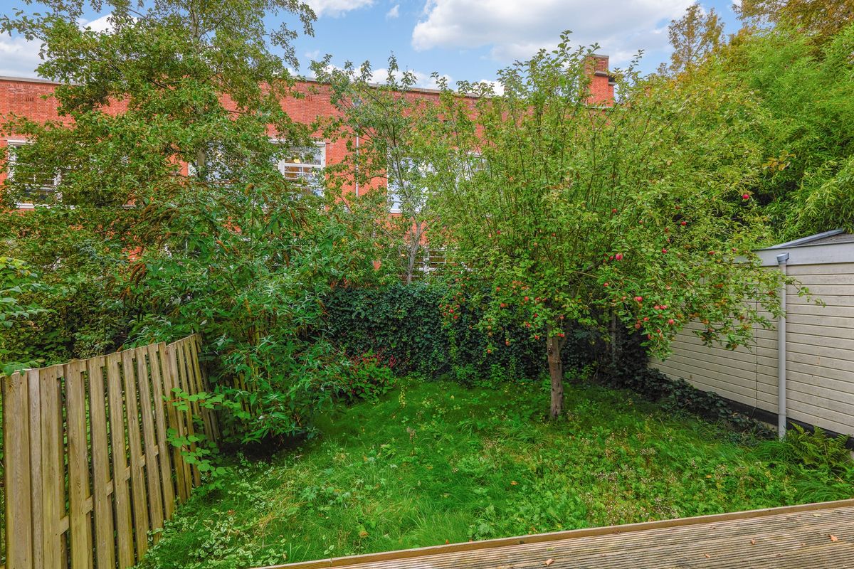 The property features a charming front garden. Through the spacious entrance, you arrive in the hallway with a separate toilet (with washbasin). From the hallway, there is access to the bright living room, the cozy kitchen, and the staircase to the first floor. The L-shaped living room offers views of the front garden, while the kitchen overlooks the lush back garden with apple trees. Thanks to the mature greenery and trees, the garden offers plenty of privacy and a sheltered feel. Adjacent to the garden is a large storage space with direct access from the street.