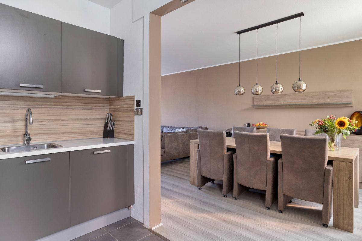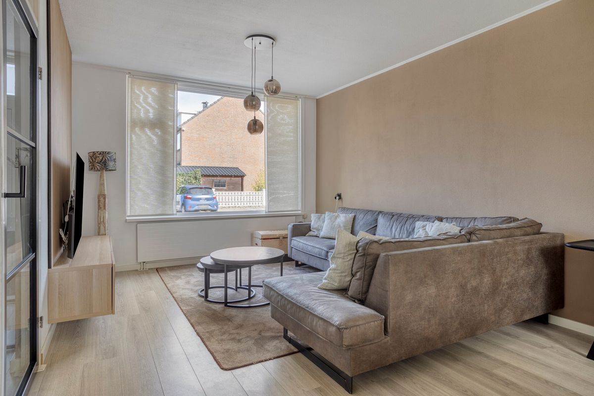 Bij binnenkomst tref je een lichte hal met vernieuwde meterkast, modern toilet (2025) en gerenoveerde trap. De woonkamer met laminaatvloer is ruim en voorzien van elektrische rolluiken. De halfopen keuken (2017, Whirlpool apparatuur, vaatwasser 2020) sluit hier perfect op aan en vormt een gezellige plek om te koken en tafelen.