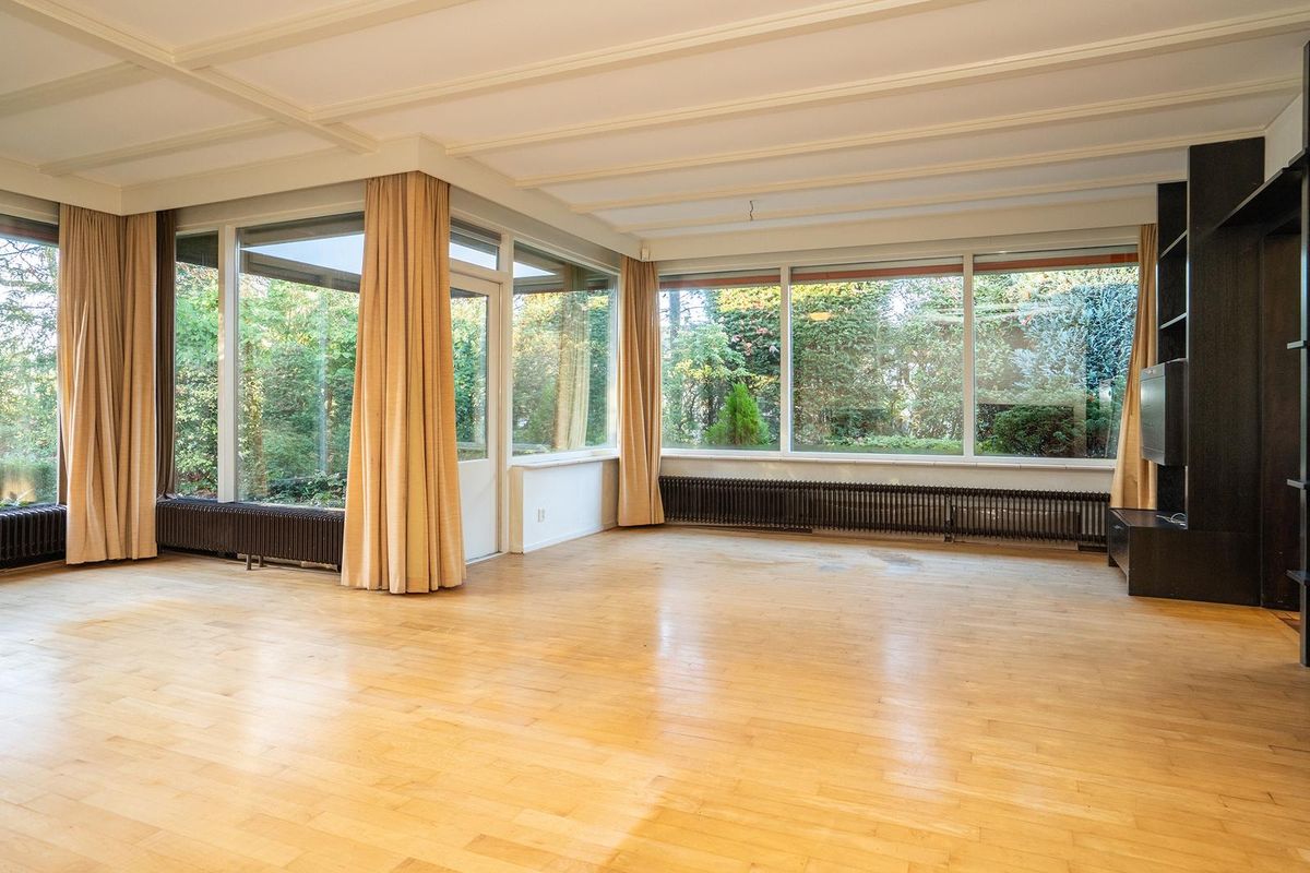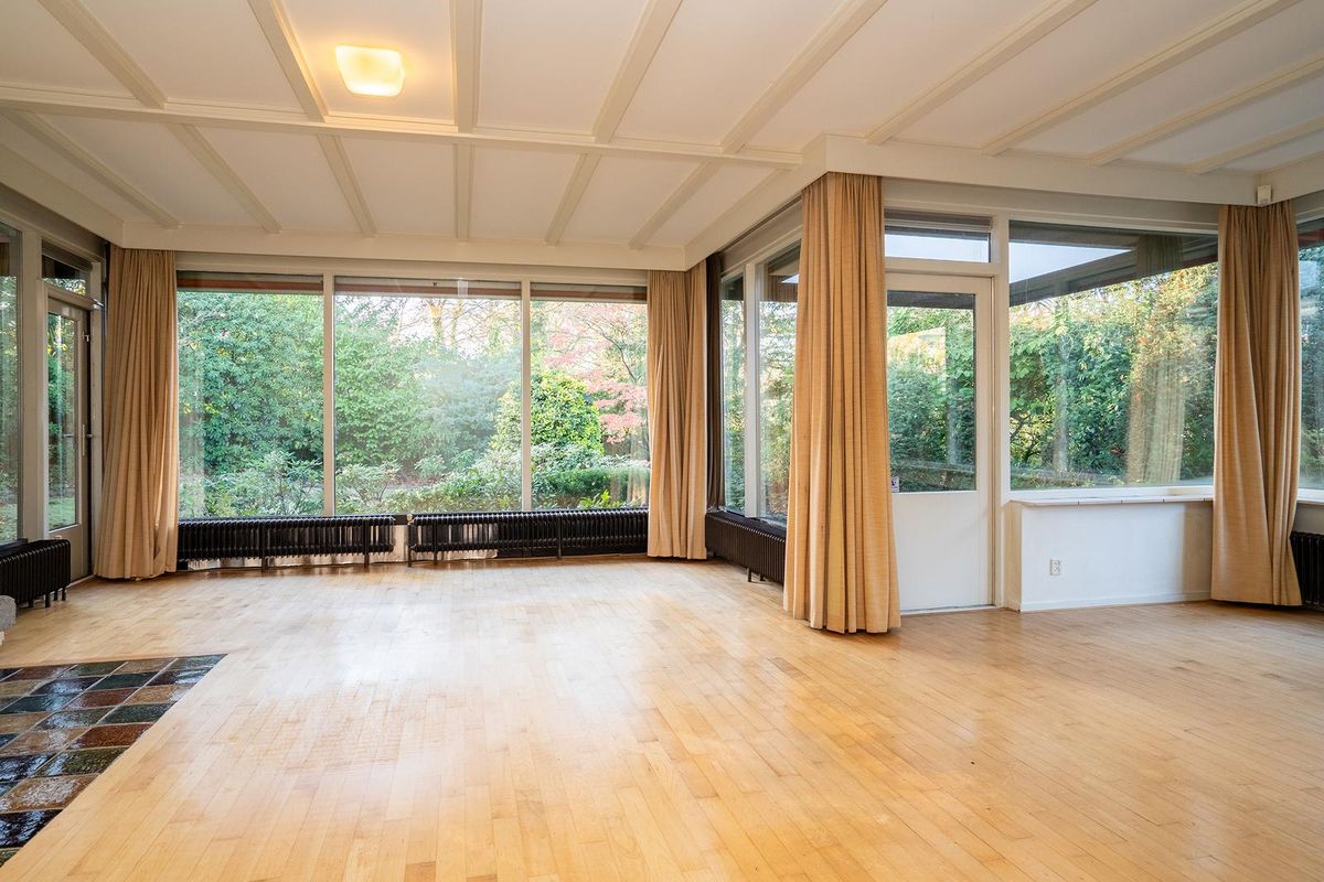 Bij binnenkomst valt direct de fijne lichtinval en ruime hal, v.v. plavuizen op, vanuit de hal zijn alle inpandige ruimtes bereikbaar. De ruime woonkamer, 47m2, met parketvloer en open haard, vormt het hart van de woning, een heerlijke plek om te ontspannen met brede raampartijen die het groen rondom prachtig naar binnen halen.