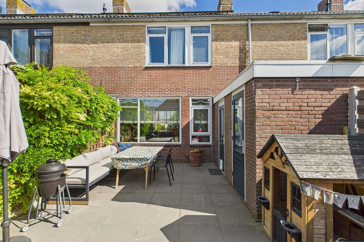De achtertuin ligt op het zonnige zuidwesten en beschikt over een praktische schuur en achterom. Een fijne plek om te genieten, te spelen