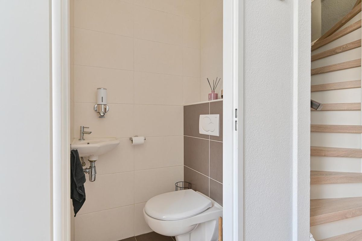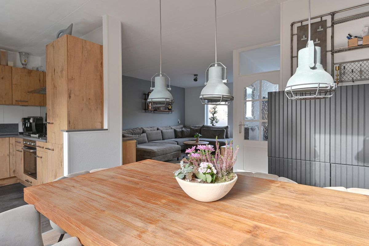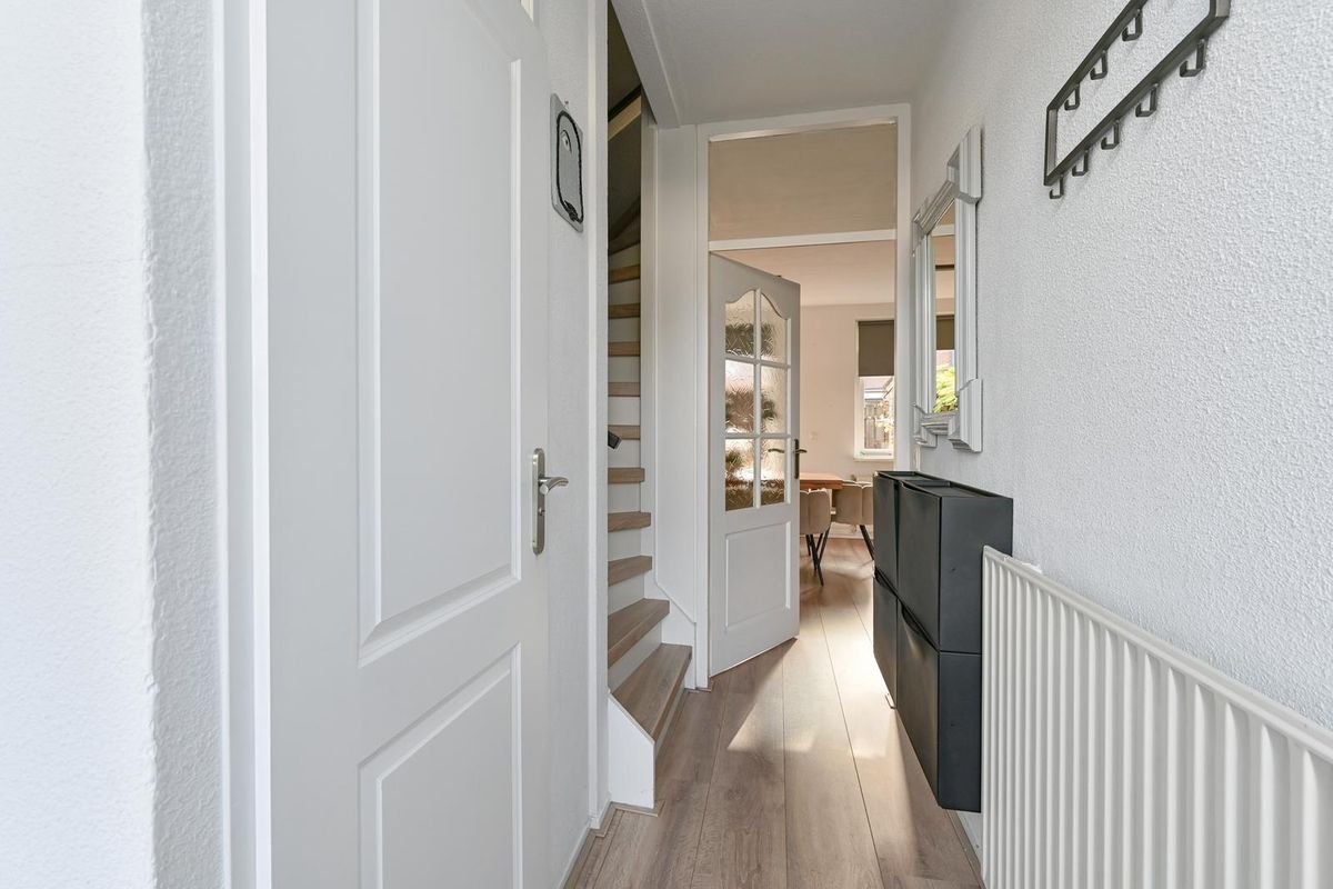 o.a. hal/entree met toilet (hangcloset met fonteintje) en trapopgang. Z-vormige woonkamer met trapkast en veel lichtinval, halfopen keuken in hoekopstelling is voorzien van diverse inbouwapparatuur. Vanuit de keuken toegang tot de praktische bijkeuken/berging en het overdekte terras. Op de eerste verdieping een overloop met toegang tot drie slaapkamers en een badkamer met inloopdouche, tweede toilet (hangcloset), designradiator en wastafelmeubel. Via een vaste trap bereikbare zolder met overloop en vierde slaapkamer.