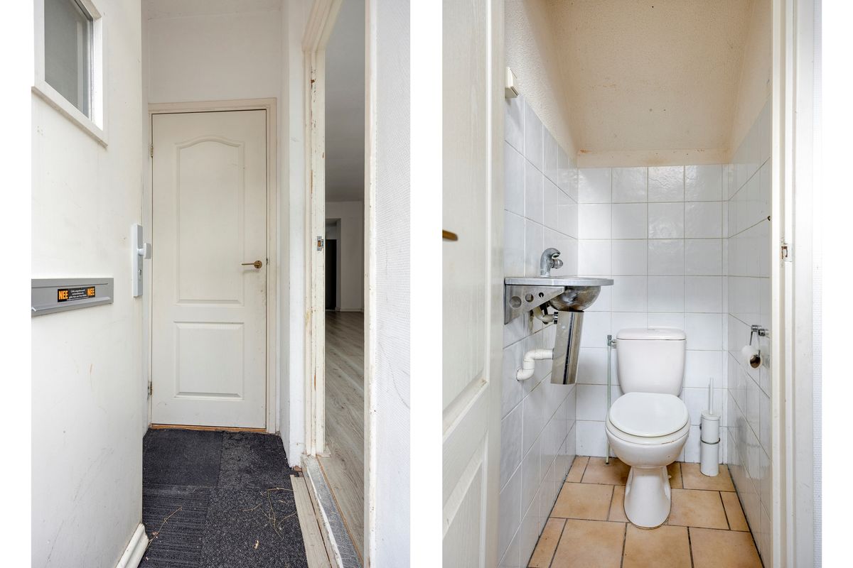 Je komt binnen in de hal met toiletruimte (toilet en fonteintje). De lichte woonkamer biedt volop ruimte voor een nieuwe, frisse indeling en geeft toegang tot de trap naar de eerste verdieping.