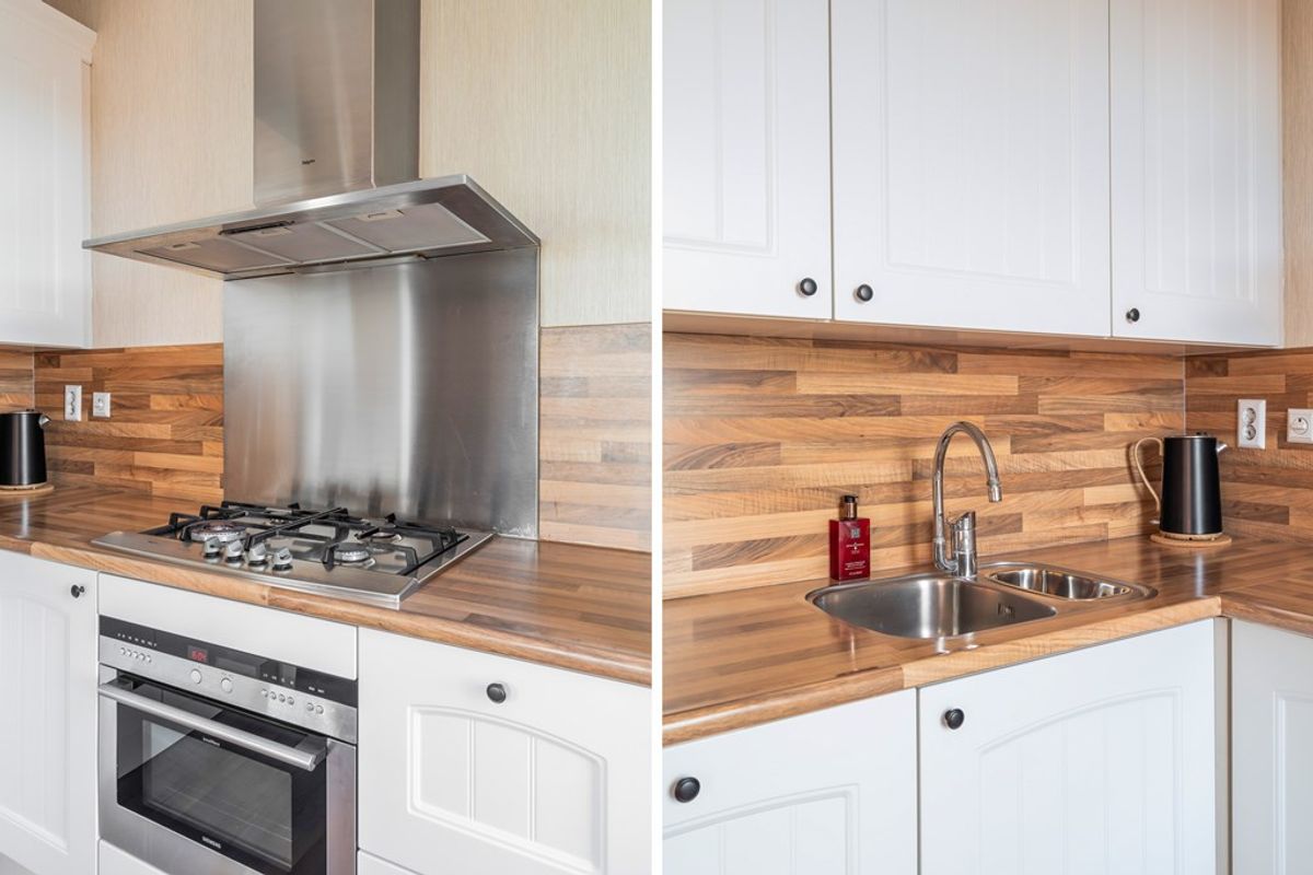 De open keuken is onlangs professioneel opgefrist; de kastfronten zijn opnieuw gespoten, waardoor de keuken een frisse en moderne uitstraling heeft gekregen. De keuken is van alle gemakken voorzien en uitgerust met een koel-/vriescombinatie, een combioven, een gaskookplaat met afzuigkap, een vaatwasser en een spoelbak. Alles is functioneel ingedeeld en nodigt uit om er dagelijks met plezier te koken.