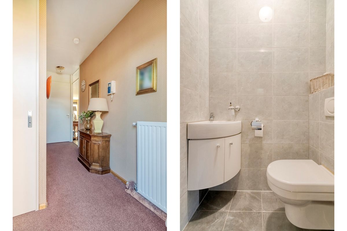 Bij binnenkomst ervaart u meteen de royale opzet. De hal is niet alleen ruim, maar biedt dankzij de grote bergkast extra mogelijkheden: van voorraad en huishoudelijke apparaten tot een plek voor de kussens van uw terrasmeubilair. Praktisch én verzorgd.