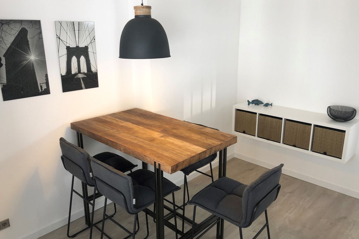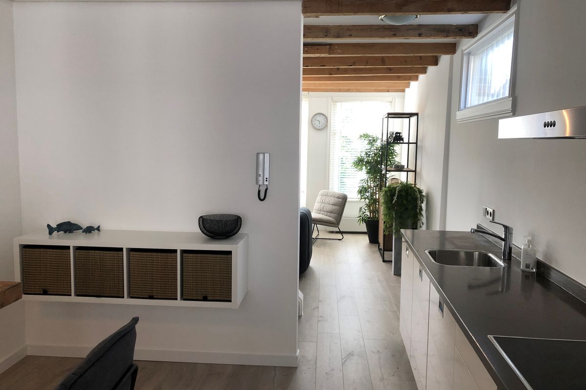 Through the common staircase you reach the third floor, entrance on the first floor of the apartment, entry into the hall with cloakroom and separate toilet, access to the bright, modern and comfortably furnished living room with balcony at the front, beautiful view over the Singel canal , at the rear is the kitchen with all desirable built-in apartment and a dining area furnished with dining table and chairs.