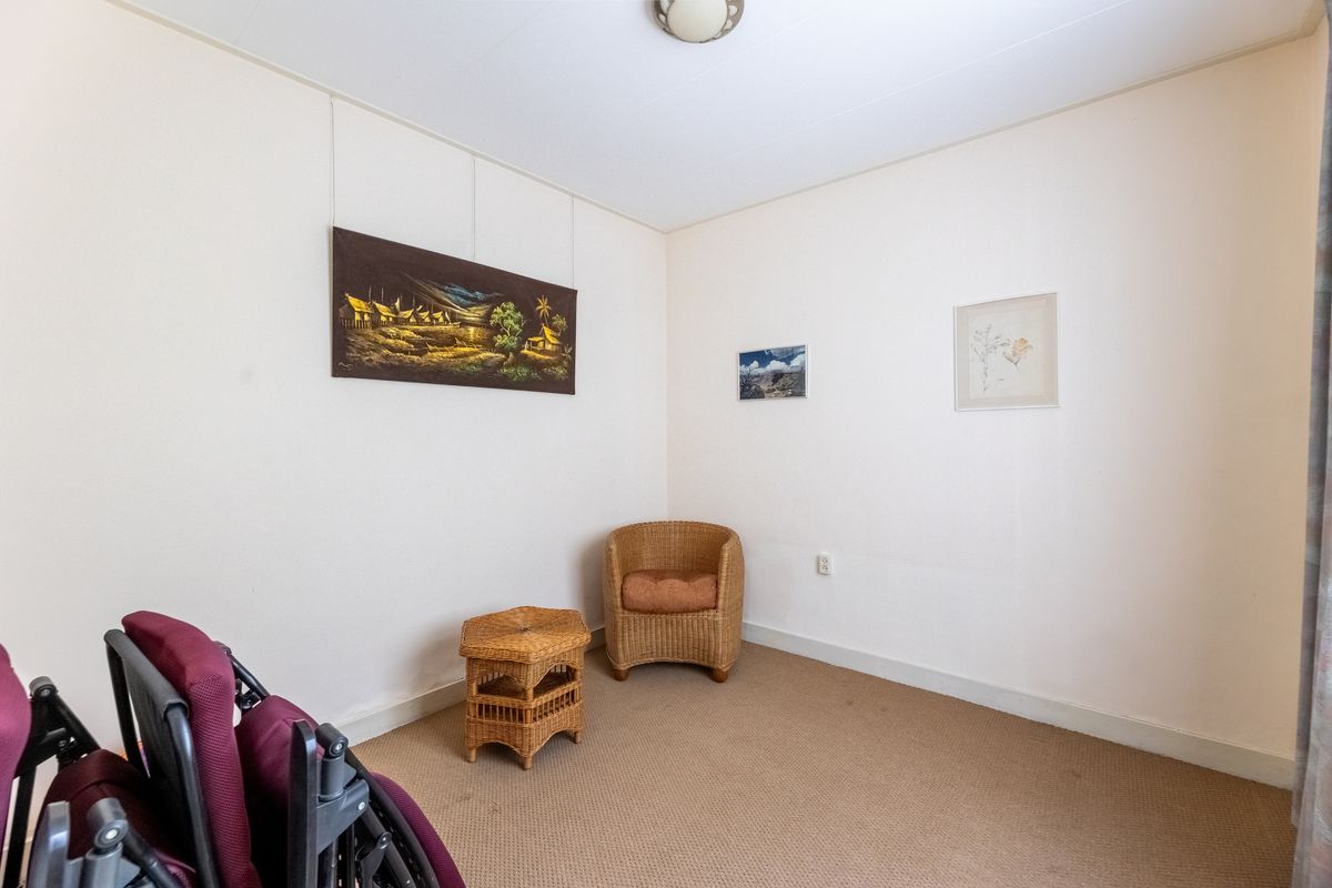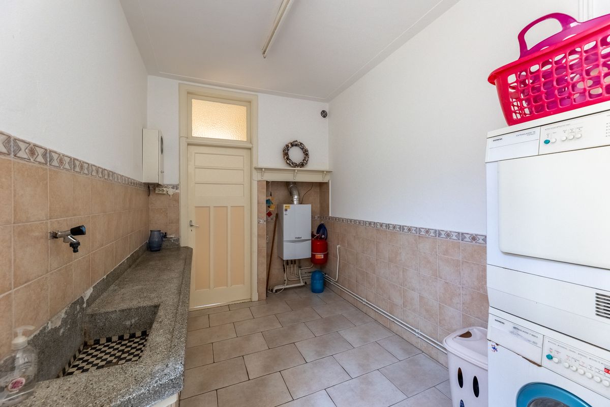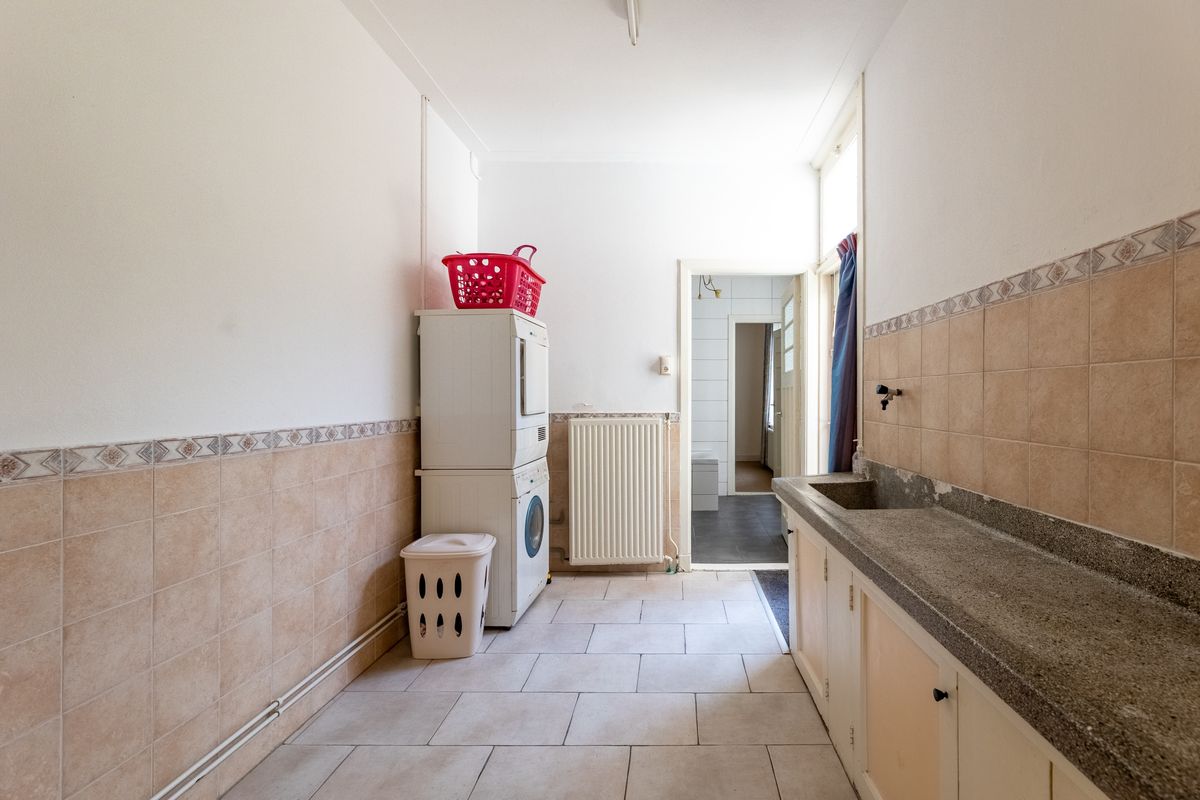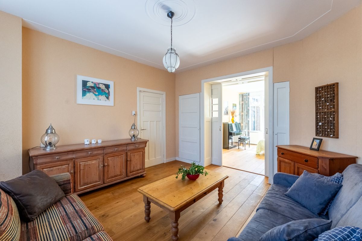 Entree met de lange hal. Op de begane grond is al direct de fraaie en zo kenmerkende jaren ‘30 indeling terug te vinden. Er zijn twee kamers die middels de en-suitedeuren met vaste kastruimte apart van elkaar te gebruiken zijn. De kamer aan de achterzijde heeft openslaande deuren naar de achtertuin. In de hal is er een toiletruimte en de trapopgang naar de verdieping. In het verlengde van de hal is een (voormalige) keukenruimte met c.v.-installatie en aansluitend een badkamer met ligbad, douche en wastafelmeubel. Vanuit de badkamer loopt u door naar een extra (slaap)kamer.