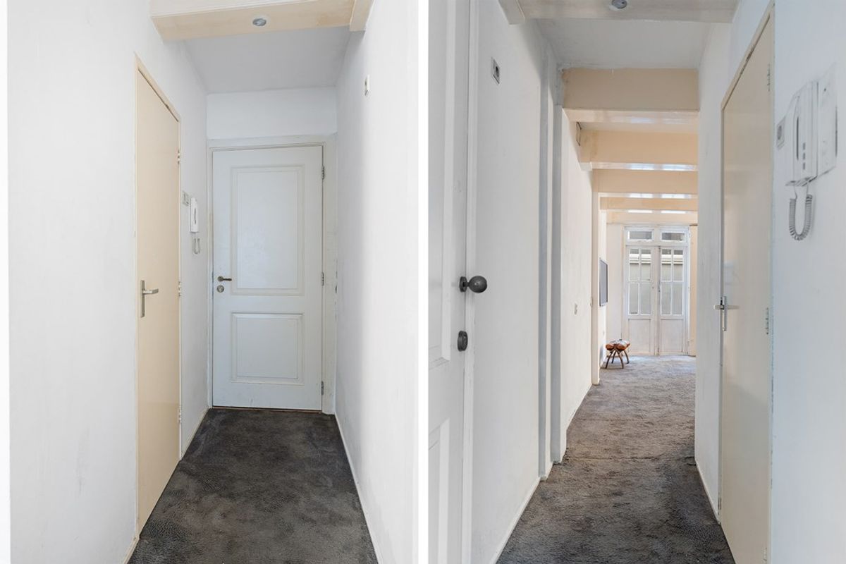 Via het verzorgde trappenhuis met lift bereik je de tweede verdieping. De entree komt uit in de hal met toegang tot de keuken en badkamer. De lichte woonruimte biedt plek voor een zithoek, eethoek en slaapgedeelte. Dankzij de openslaande ramen en deuren naar de brandtrap valt er veel daglicht binnen en is er een prettige connectie met buiten.