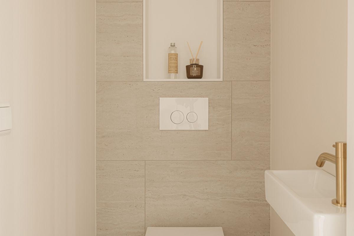 • Volledig gestucte wanden en plafonds met strakke inbouwspots