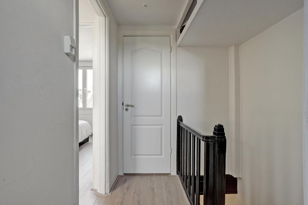 De overloop biedt toegang tot twee slaapkamers en de badkamer. Ook vindt u hier de kast met CV-opstelling en wasmachineaansluiting.