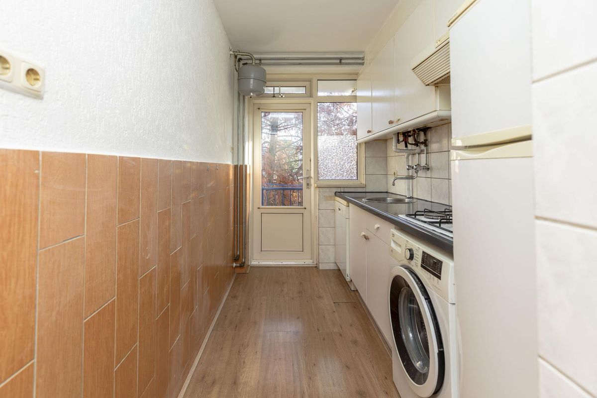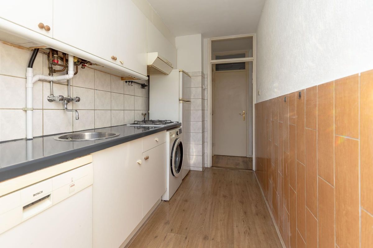 * De keuken bevindt zich aan de achterzijde van de woning en is voorzien een gas-kookplaat, afzuigkap, koel/vriescombinatie en vaatwasser. Ook bevindt zich hier de aansluiting van de wasmachine. Middels een deur is er toegang tot het balkon aan de achterzijde;