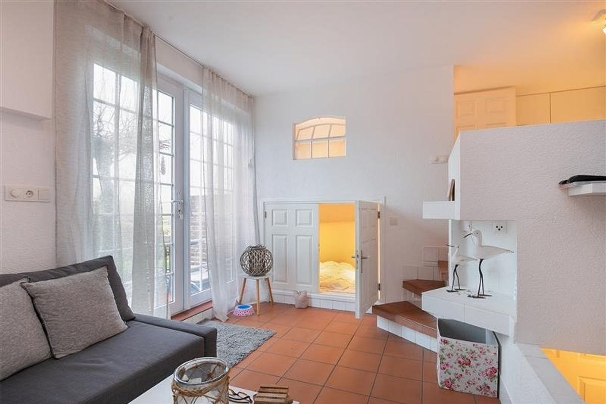 Open indeling met slimme slaapgelegenheid op hoogte. Ideaal voor kort verblijf of seizoen verhuur.