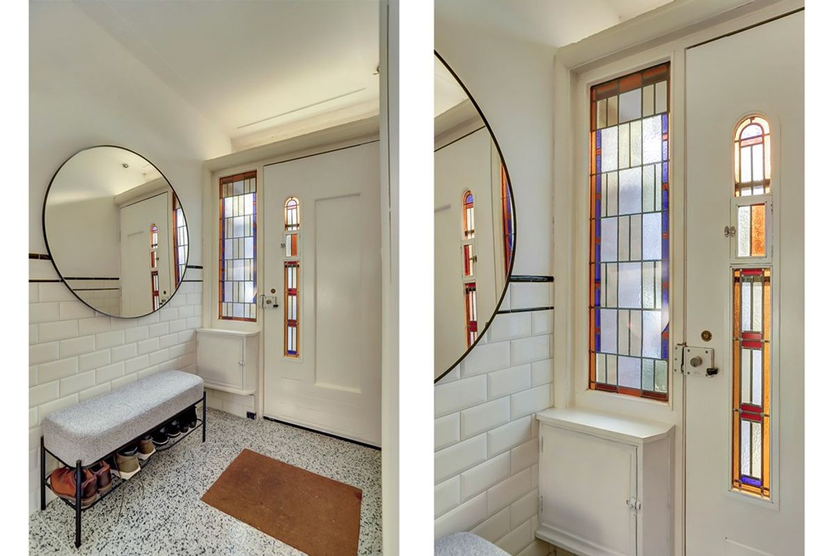 De entree met glas-in-loodramen, gecombineerd met de volledig gemoderniseerde en uitgebouwde woning, geeft het huis een uniek karakter. Hier versmelten oud en nieuw op een prachtige manier.