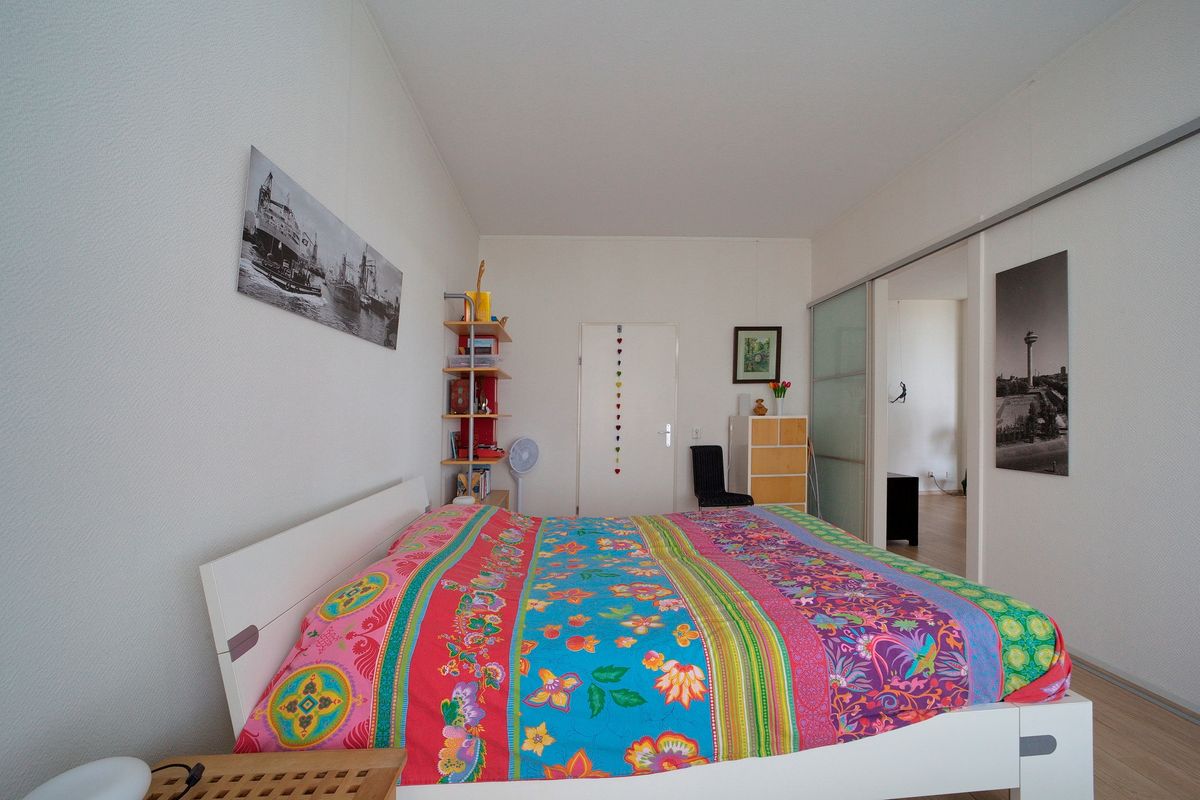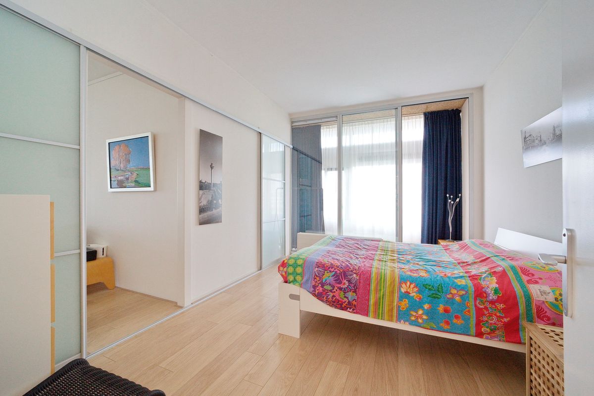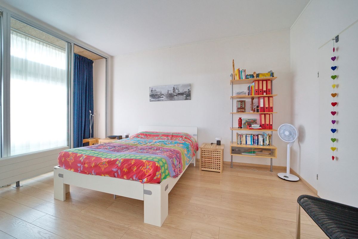 Het appartement is voorzien van 1 ruime slaapkamer en inloopkast ensuite. Deze ruimte biedt de mogelijk om er een extra slaapkamer van te maken. Andere indelingen zijn mogelijk door de tussenmuren te verplaatsen of te verwijderen. Ook de slaapkamer is voorzien van hoge ramen tot aan het plafond. Alle kamers zijn voorzien van hoge schuifdeuren.