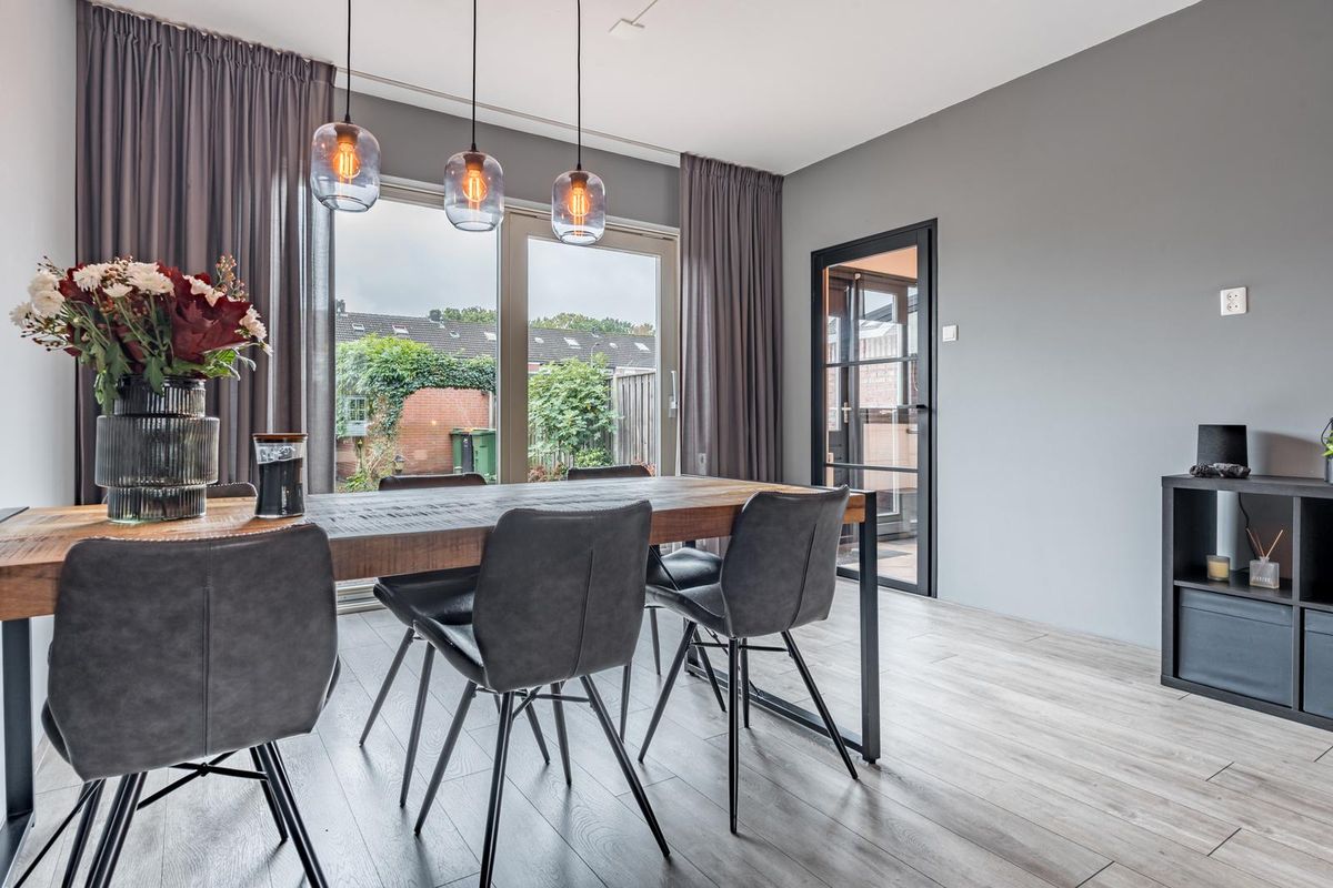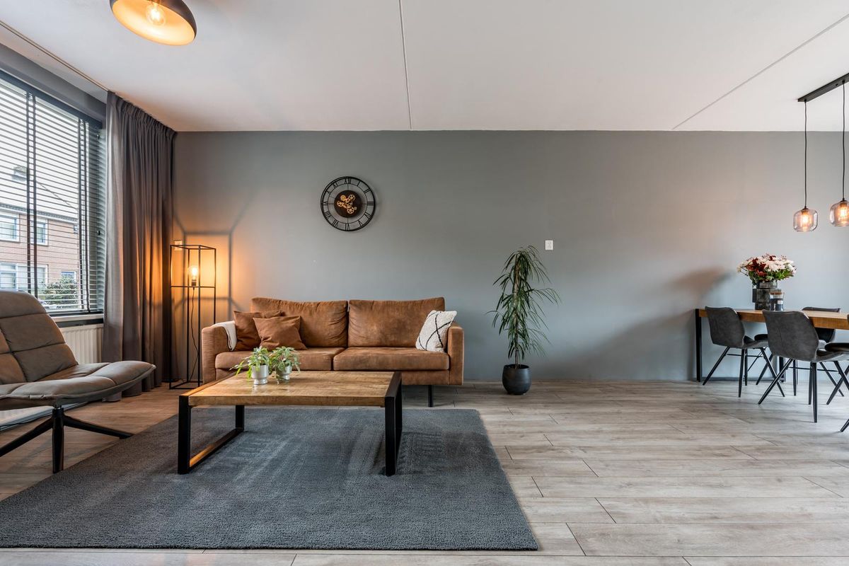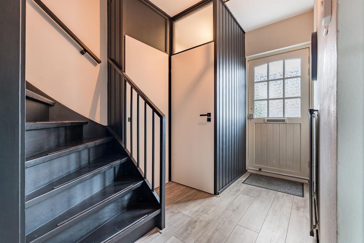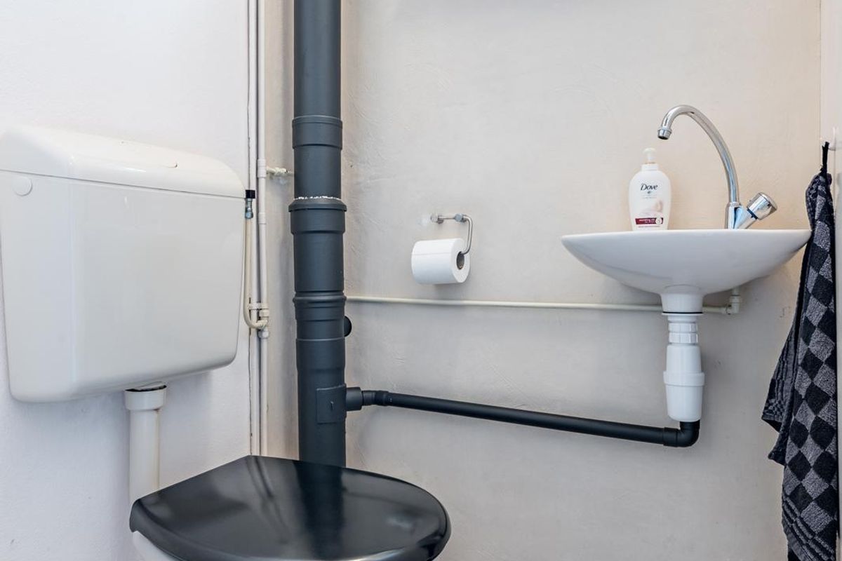 Begane grond: hal met trapopgang en toilet. Woonkamer met schuifpui, dichte keuken voorzien van gaskookplaat en afzuigkap.
