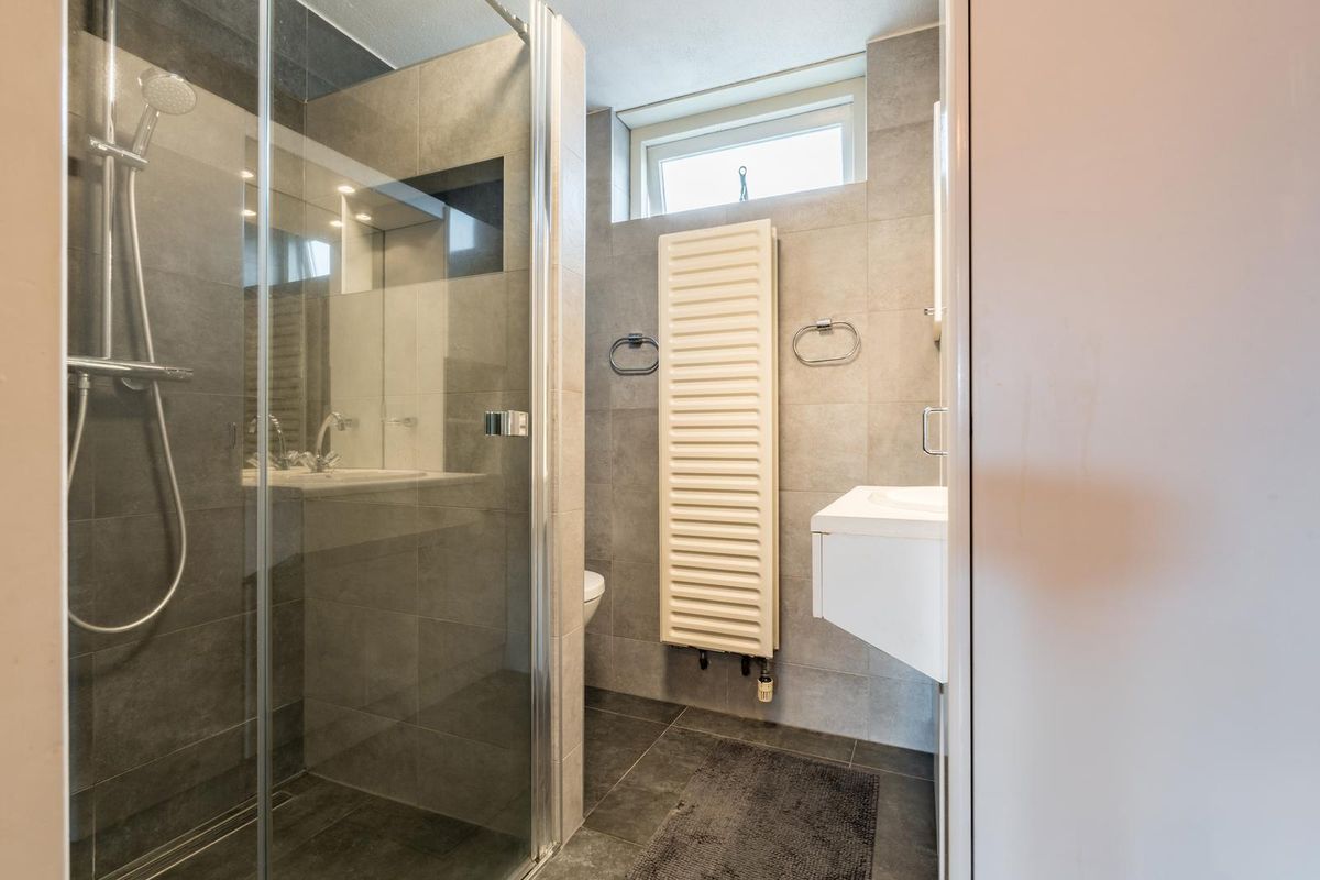 1e verdieping: overloop, 3 slaapkamers (ca. 9m2, 12m2 en 16m2) met vaste kasten en moderne badkamer met toilet, douche en wastafelmeubel.