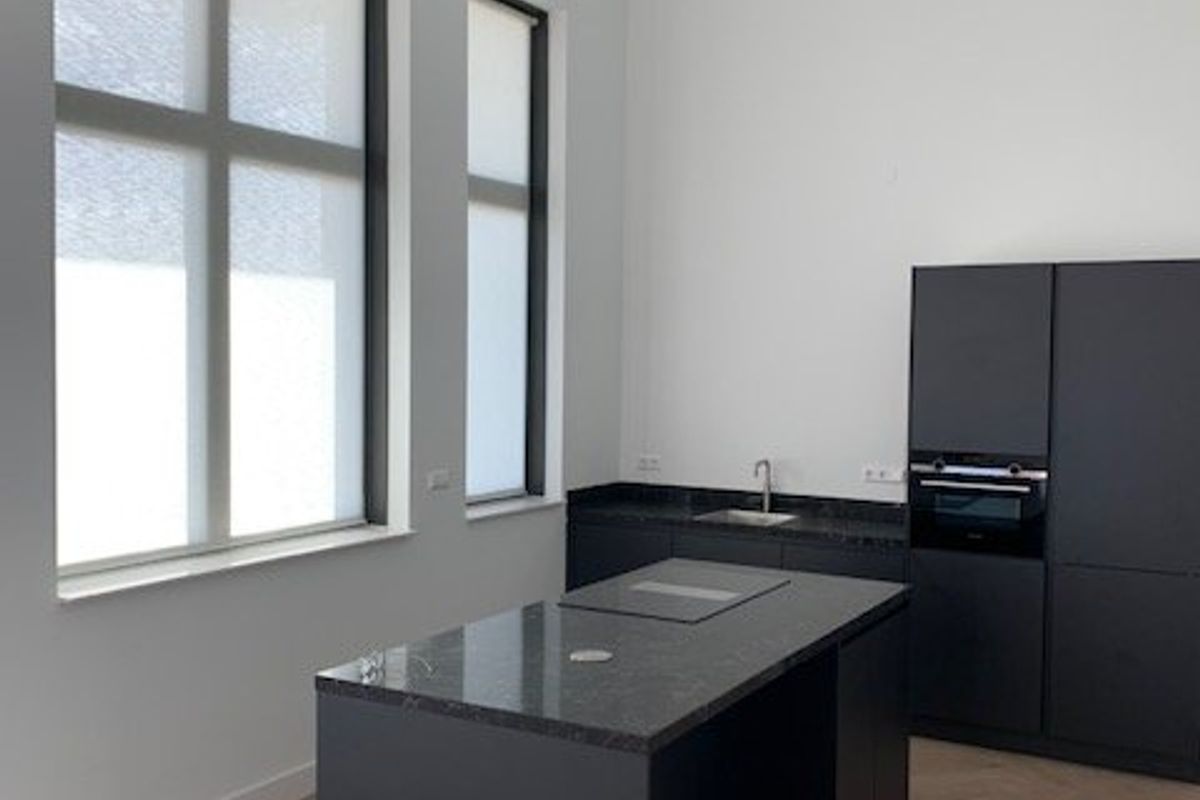Access with elevator to the storage rooms and parking spaces via the central entrance. This apartment is on the ground floor. Entrance, porch with meter cupboards. Access to the living room. The living room has a beautiful height of over 4m. French doors to the south-facing terrace with a view of the park. Open kitchen with all imaginable amenities, including induction cooking, dishwasher and a Quookerr.