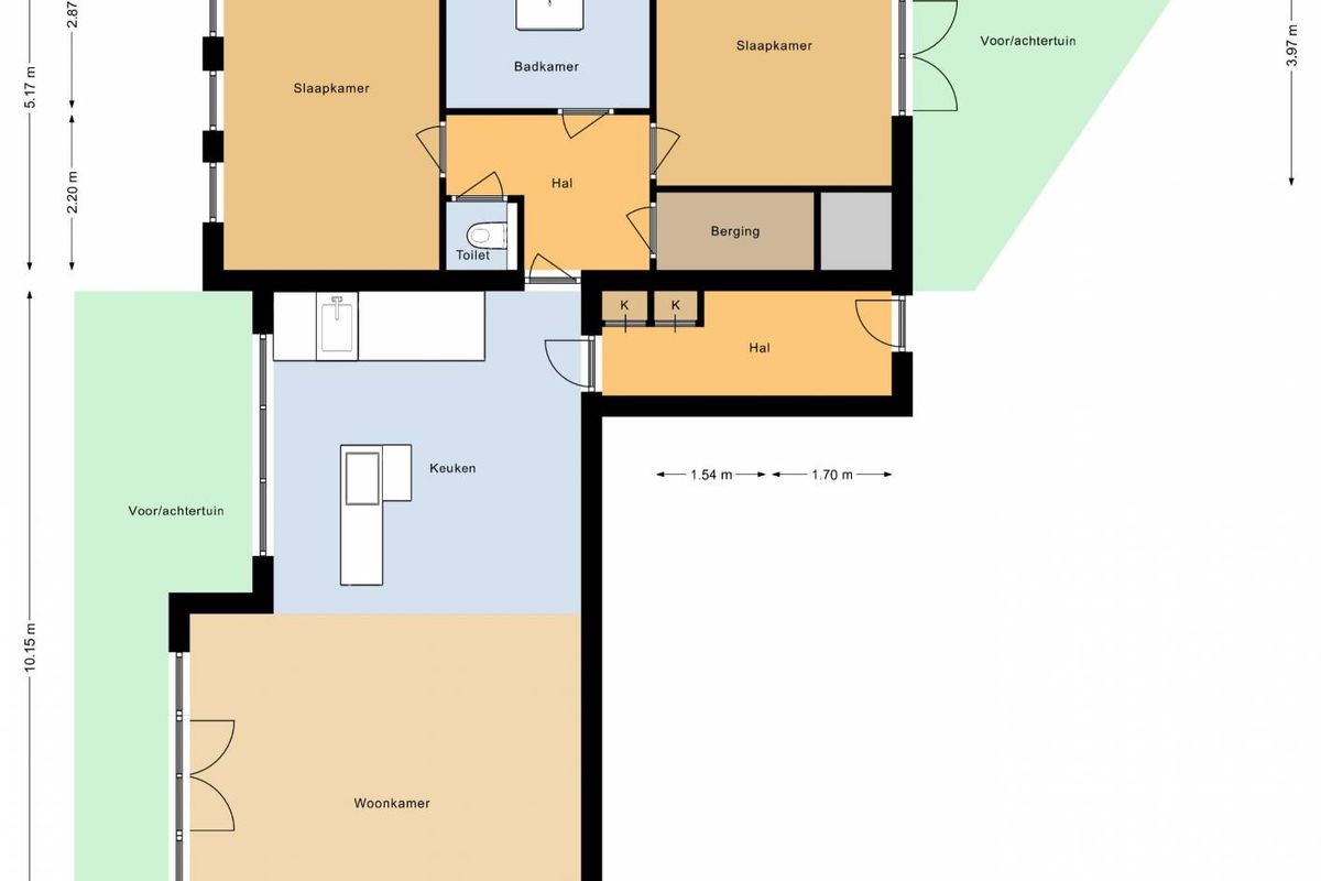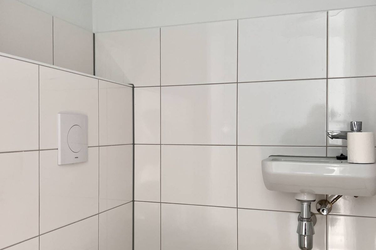 2nd hall from the living room with access to large storage room, toilet with hand basin. Bathroom with sink, walk-in shower and washing machine + dryer. A spacious bedroom with patio doors to the garden and a large bedroom with a view of the park.