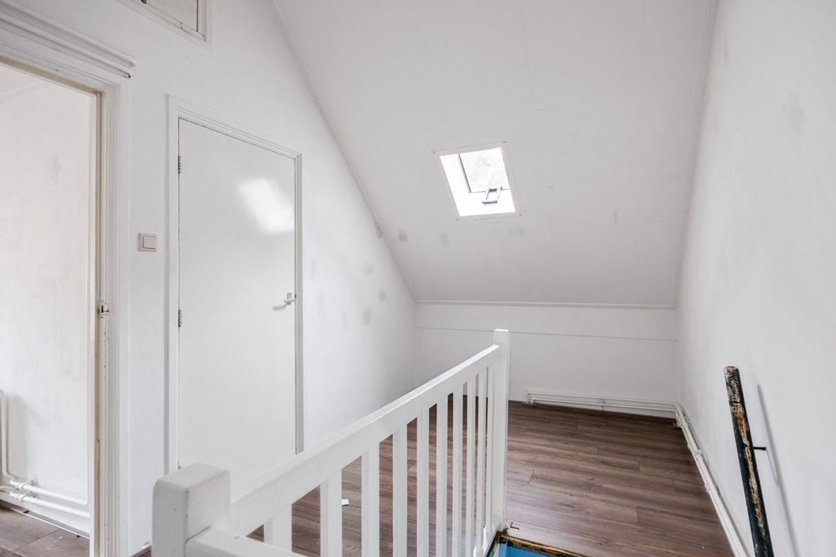 Via de bijkeuken is zowel de achtertuin bereikbaar als de trap naar de eerste verdieping. Op de verdieping vindt u de overloop met toegang tot twee slaapkamers.