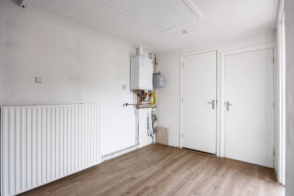 Bij binnenkomst treft u de hal met trapkast en doorgang naar de woonkamer. Vanuit de woonkamer bereikt u de gesloten keuken, die aansluit op de ruime bijkeuken. Hier bevinden zich de cv-installatie, witgoedaansluitingen, het toilet en de keurig afgewerkte badkamer met douche en wastafel.