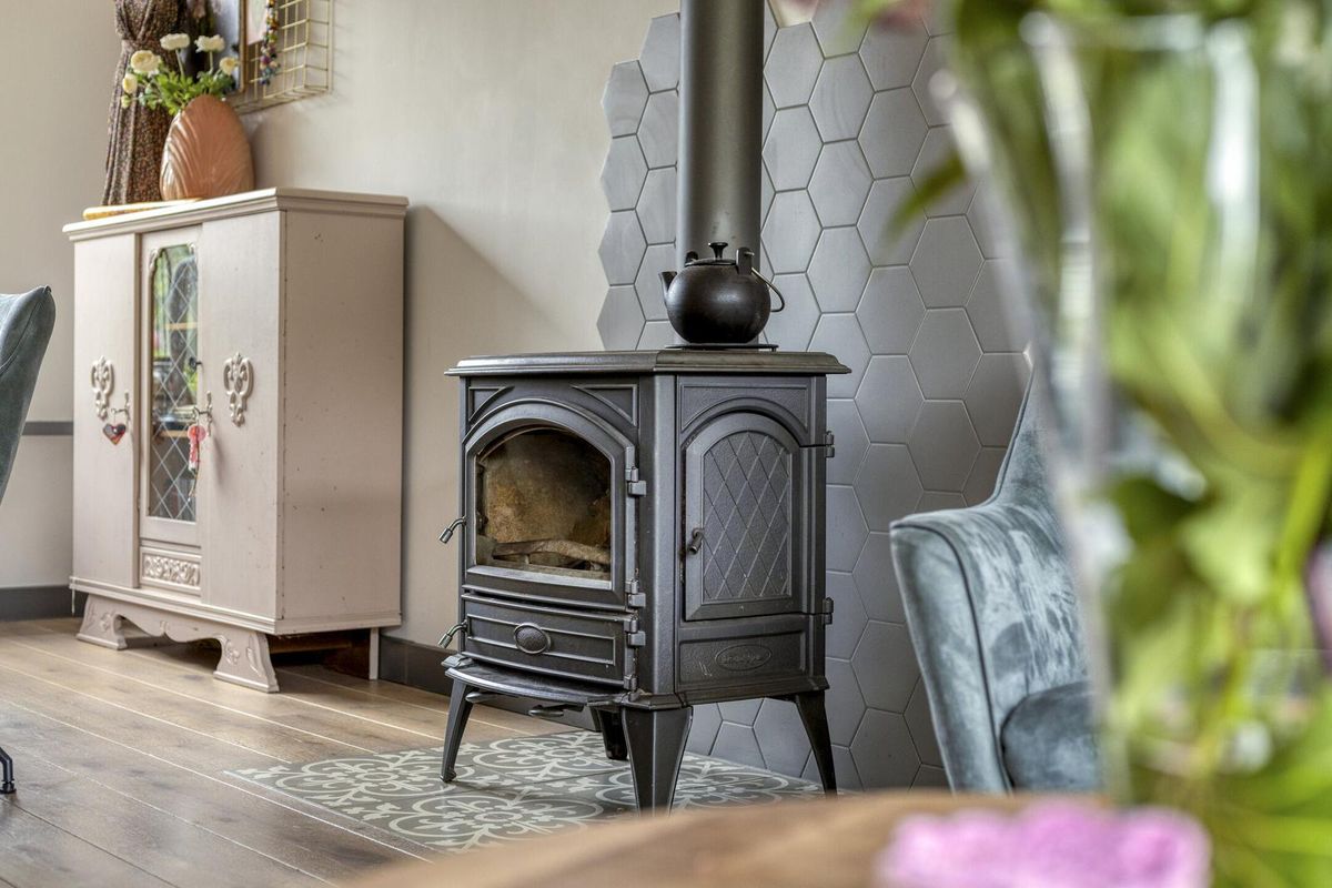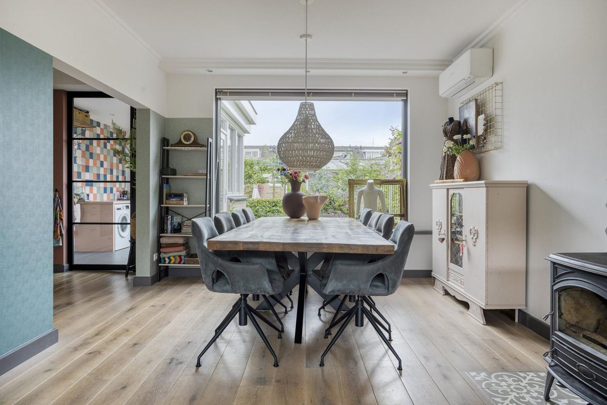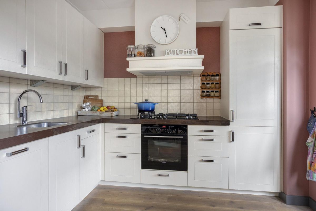 Via de groene voortuin betreedt u de woning in de hal, die toegang biedt tot de meterkast (4 aardlekschakelaars en 11 groepen), een trapkast en een luxe toilet met hangend fonteintje en elektrische vloerverwarming. Via een houten schuifdeur bereikt u de lichte woonkamer met gestucte muren, afgewerkt met strak glasvliesbehang. Dankzij de erker (2022) geniet u van extra ruimte en lichtinval, terwijl sfeervolle elementen zoals de gietijzeren kachel en de massief eiken vloer de woning karakter geven. De open keuken is voorzien van Siemens inbouwapparatuur, waaronder een kookplaat met wokpit, oven en koel-vriescombinatie. Daarnaast beschikt de keuken over een afzuigkap en vaatwasser (Miele). Vanuit de keuken bereikt u de praktische bijkeuken (2022), voorzien van zeilvloer, wasmachineaansluiting en een fijne werkplek. Deze ruimte is verder uitgerust met een schuifdeur, spots, elektrapunten, een hor en screen.