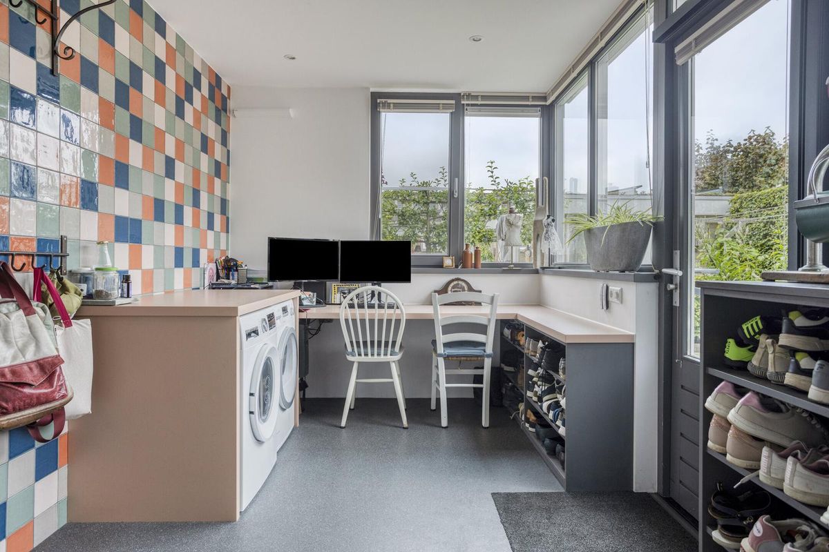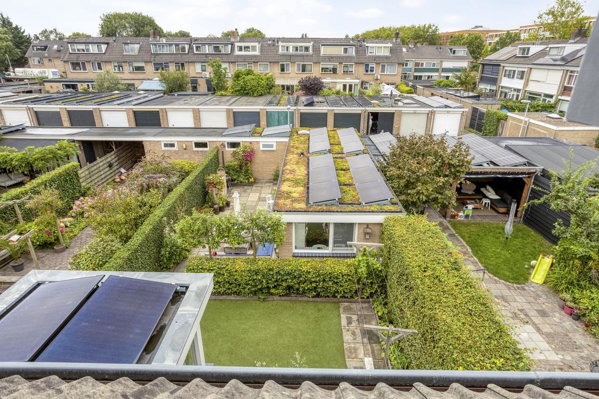 Vanuit de tuin heeft u toegang tot de ruime garage met aangrenzend atelier en extra berging. De garage en het atelier (gebouwd in 2019) zijn voorzien van airco, zeilvloer, hor en internetverbinding. De garage is aan de achterzijde bereikbaar via een sectionaaldeur en een vaste deur. Ook via zijdeuren zijn de garage en het atelier toegankelijk. De platte daken van deze bebouwing zijn met sedum bedekt, wat de levensduur van de dakbedekking verlengd en zorgt voor een koeler binnenklimaat.