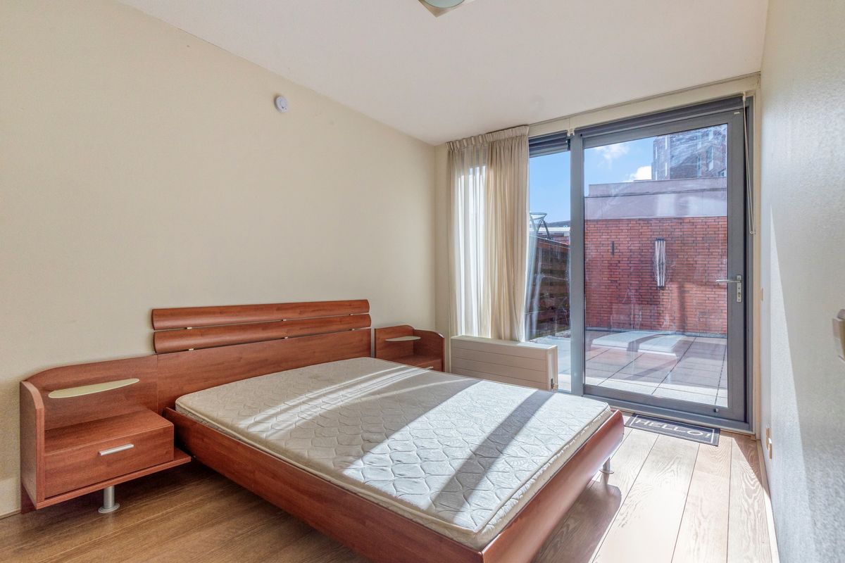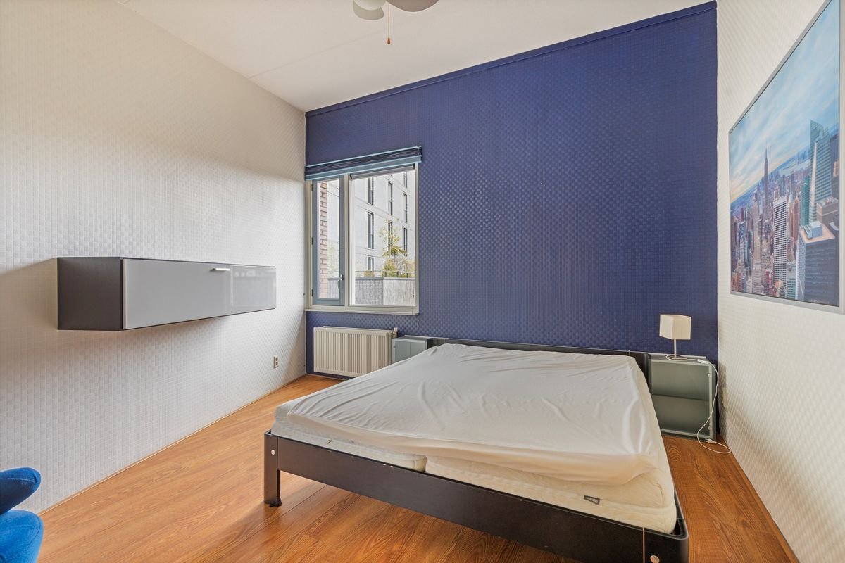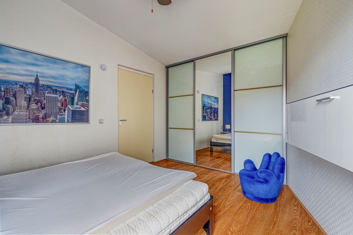 Slaapkamer 4 (21 m²), gelegen aan de voorzijde met toegang tot een zeer ruime ingerichte inloopkast. De slaapkamer is voorzien van een eiken laminaatvloer.