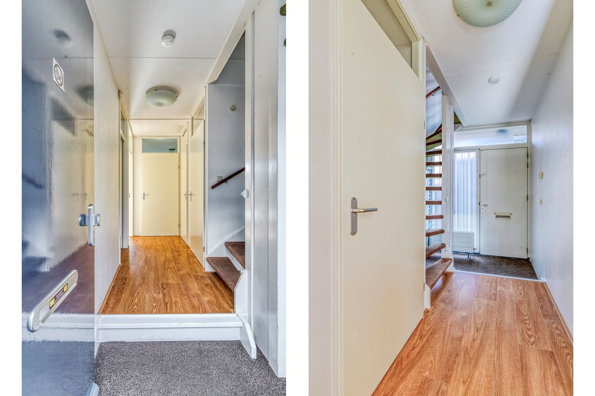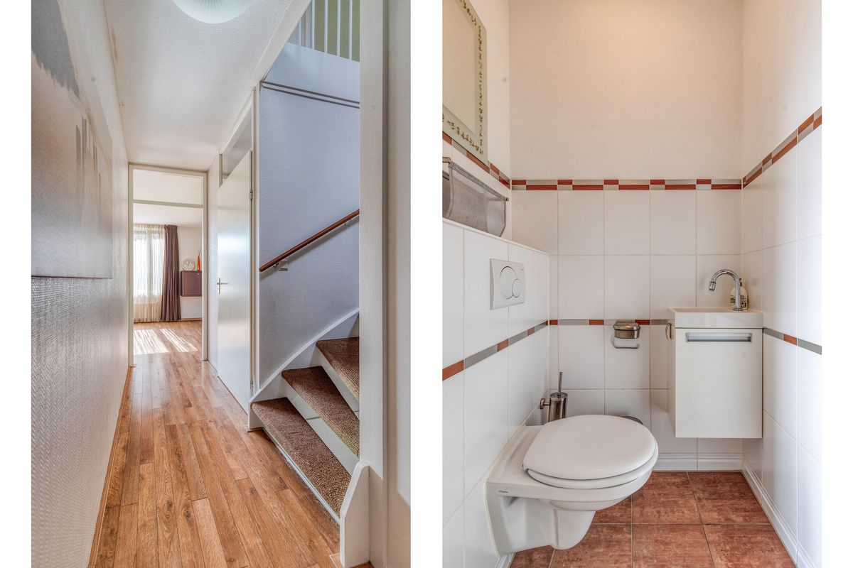 De overloop op de eerste verdieping biedt toegang tot het toilet, de woonkamer en trapopgang naar 2e verdieping.