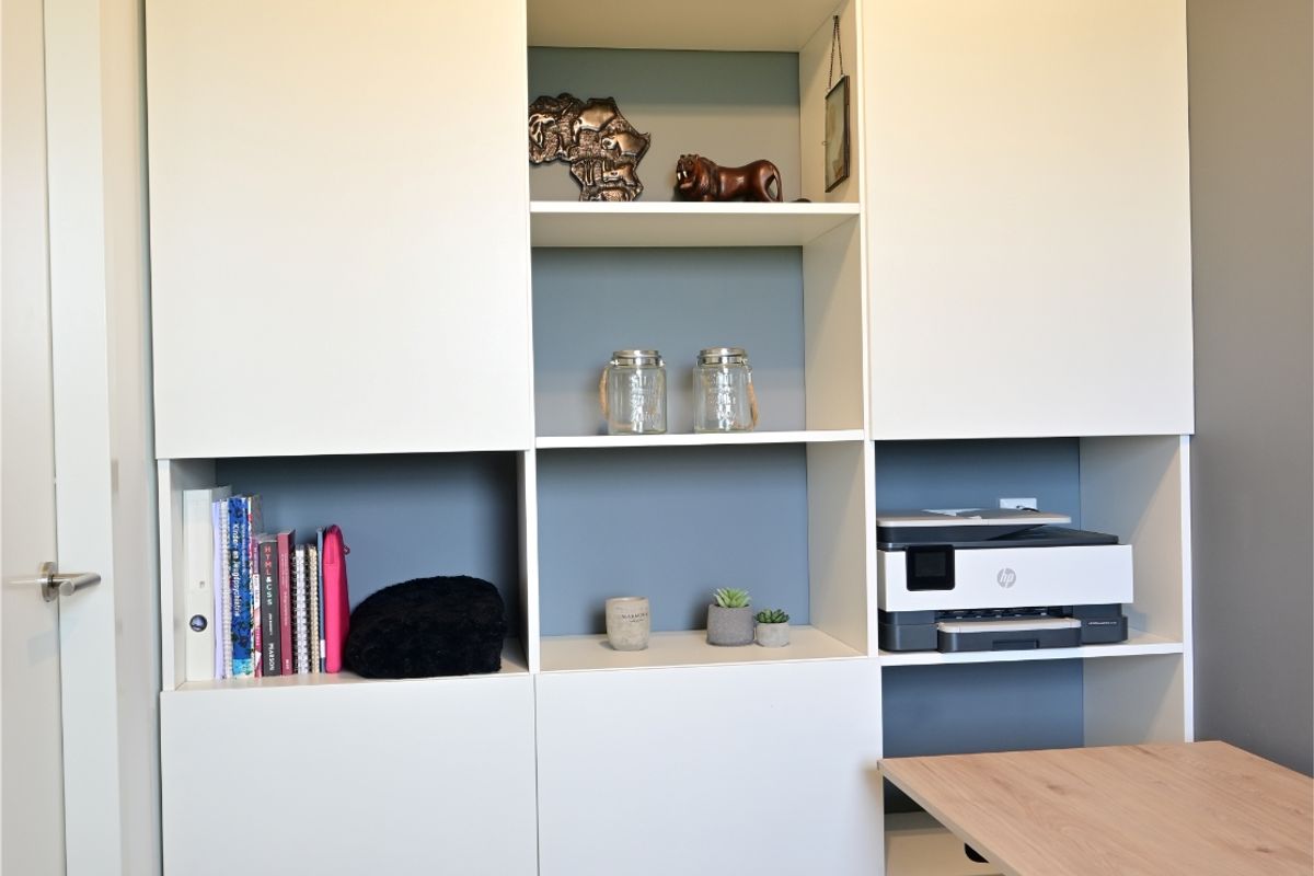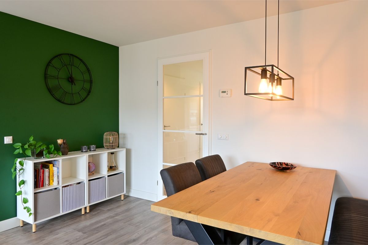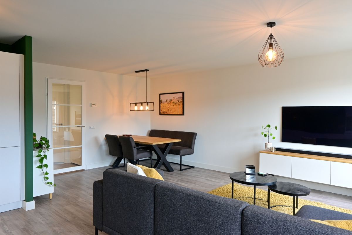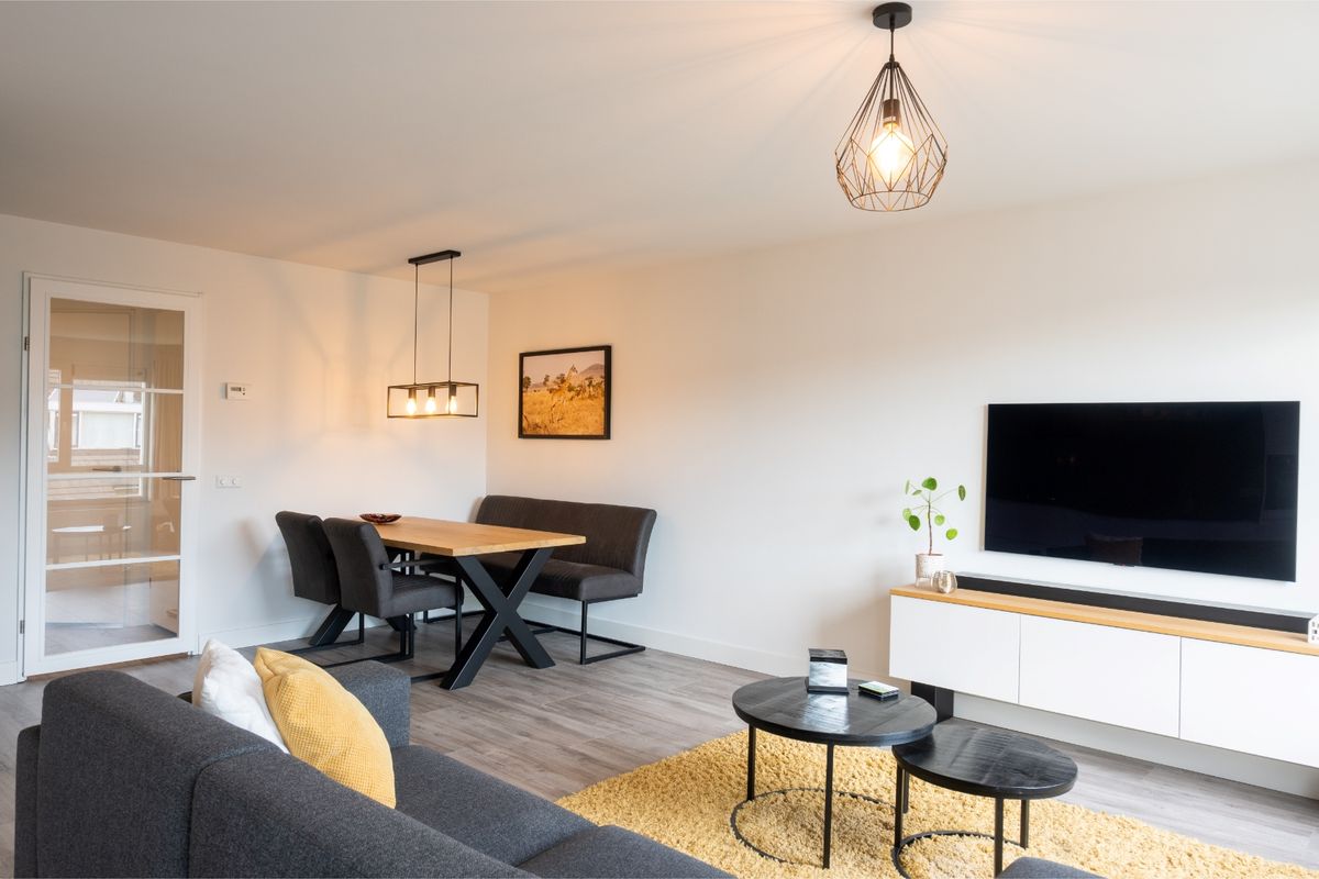 De woonkamer is lekker licht, met een moderne open keuken. Deze staat in een hoekopstelling en is voorzien van diverse inbouwapparatuur, zoals vaatwasser, 5-pits gasfornuis, koel-/vriescombinatie, combi-oven/magnetron en een Quooker. Vanuit de woonkamer heb je toegang tot het balkon.