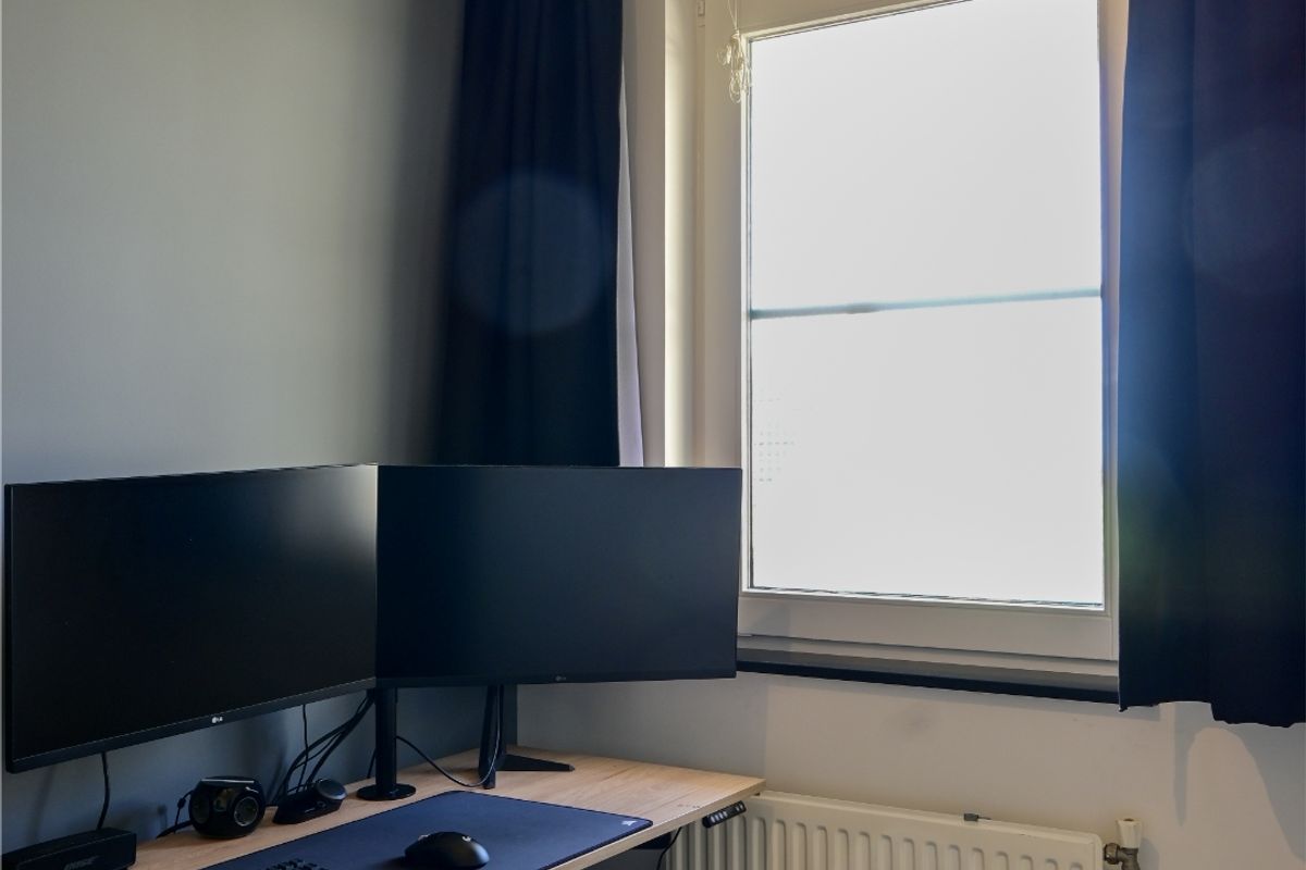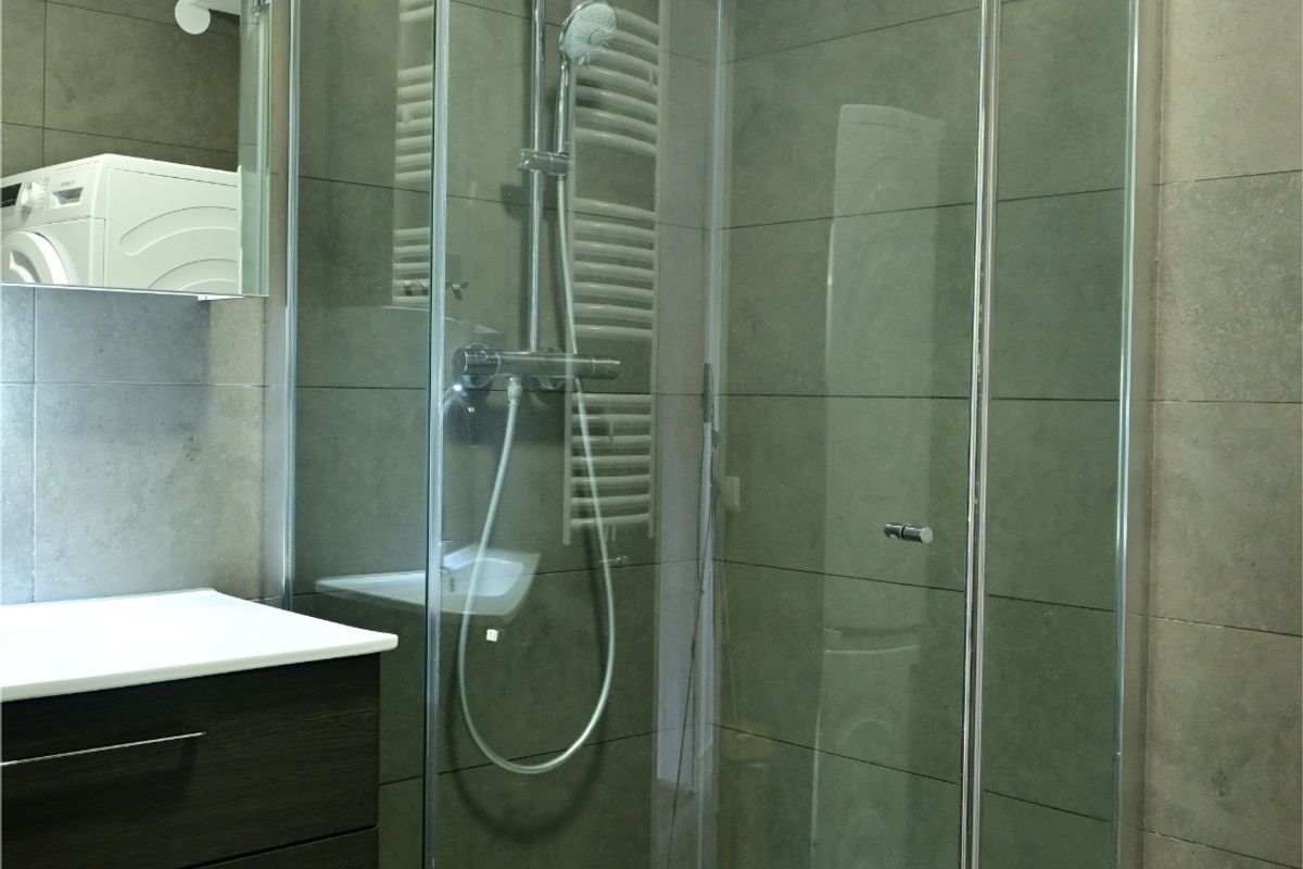 De badkamer is modern uitgevoerd en voorzien van een douchecabine, wastafelmeubel en handdoekradiator. Het appartement beschikt over twee slaapkamers die beiden aan de voorzijde liggen. De ene slaapkamer is circa 11,5 m², de andere bijna 6 m². In deze laatste slaapkamer is een op maat gemaakte kast aanwezig.