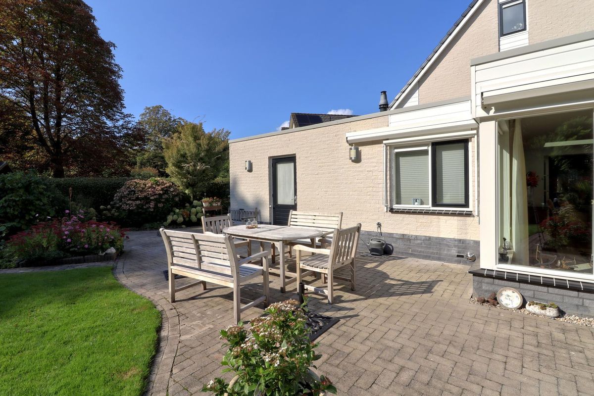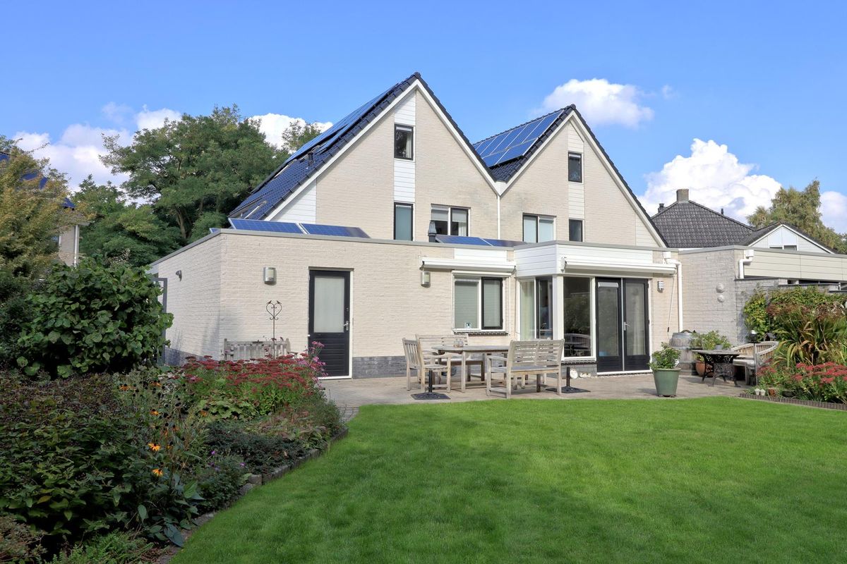 Aansluitend vind je de praktische bijkeuken met extra werkblad, aansluitingen voor wasmachine en droger, en de CV-installatie (2012). De garage is zowel van binnenuit als van buitenaf bereikbaar, met dubbele houten deuren aan de voorzijde en een loopdeur naar de tuin. De woning is bovendien voorzien van 22 zonnepanelen: hiervan zijn 12 met ca. 200 wp (2010) en 10 panelen met 405wp (2023), wat bijdraagt aan een duurzaam en energiezuinig wooncomfort.