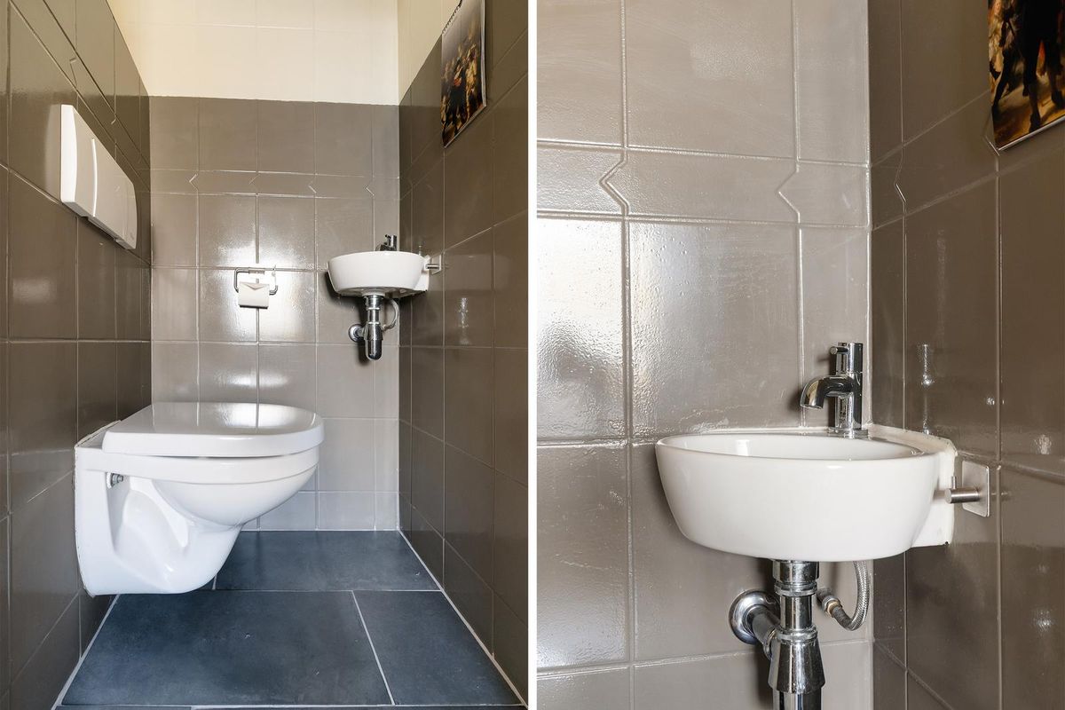 De toiletruimte is geheel betegeld en beschikt over een wandcloset en een fonteintje.