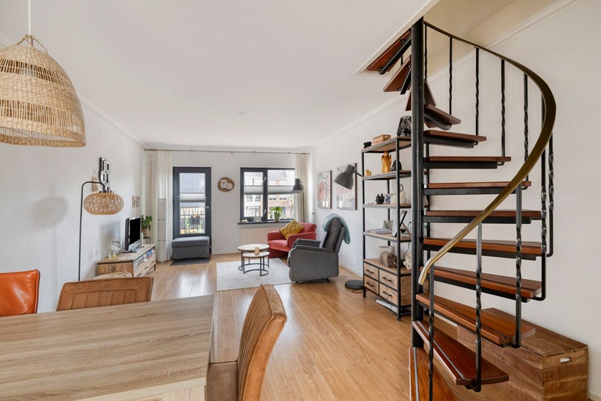 Binnen valt meteen op hoe verzorgd en eigentijds het geheel aanvoelt. De woonkamer is een heerlijke plek om thuis te komen, met vanuit hier een vrij uitzicht over het winkelgebied rond het Zeilmakersplein. Dat geeft net dat beetje levendigheid, terwijl je binnen gewoon rustig je eigen ruimte hebt. Aansluitend vind je de complete keuken: praktisch ingericht en helemaal klaar voor dagelijks gebruik.