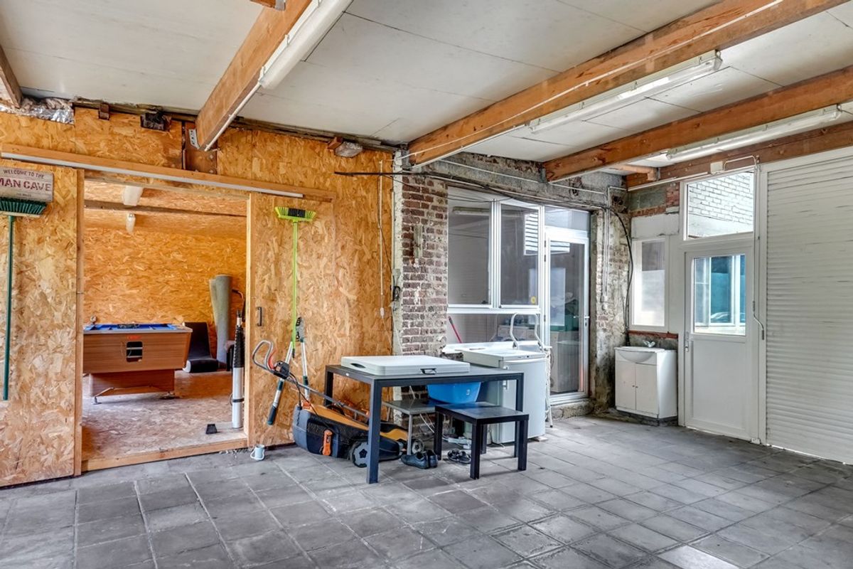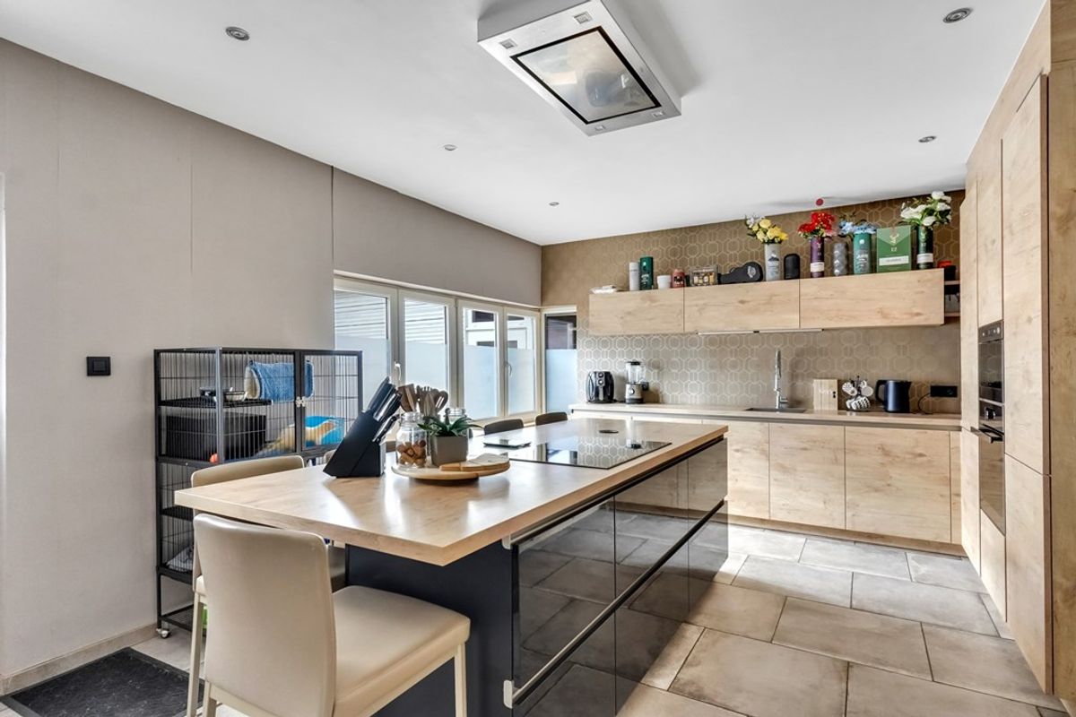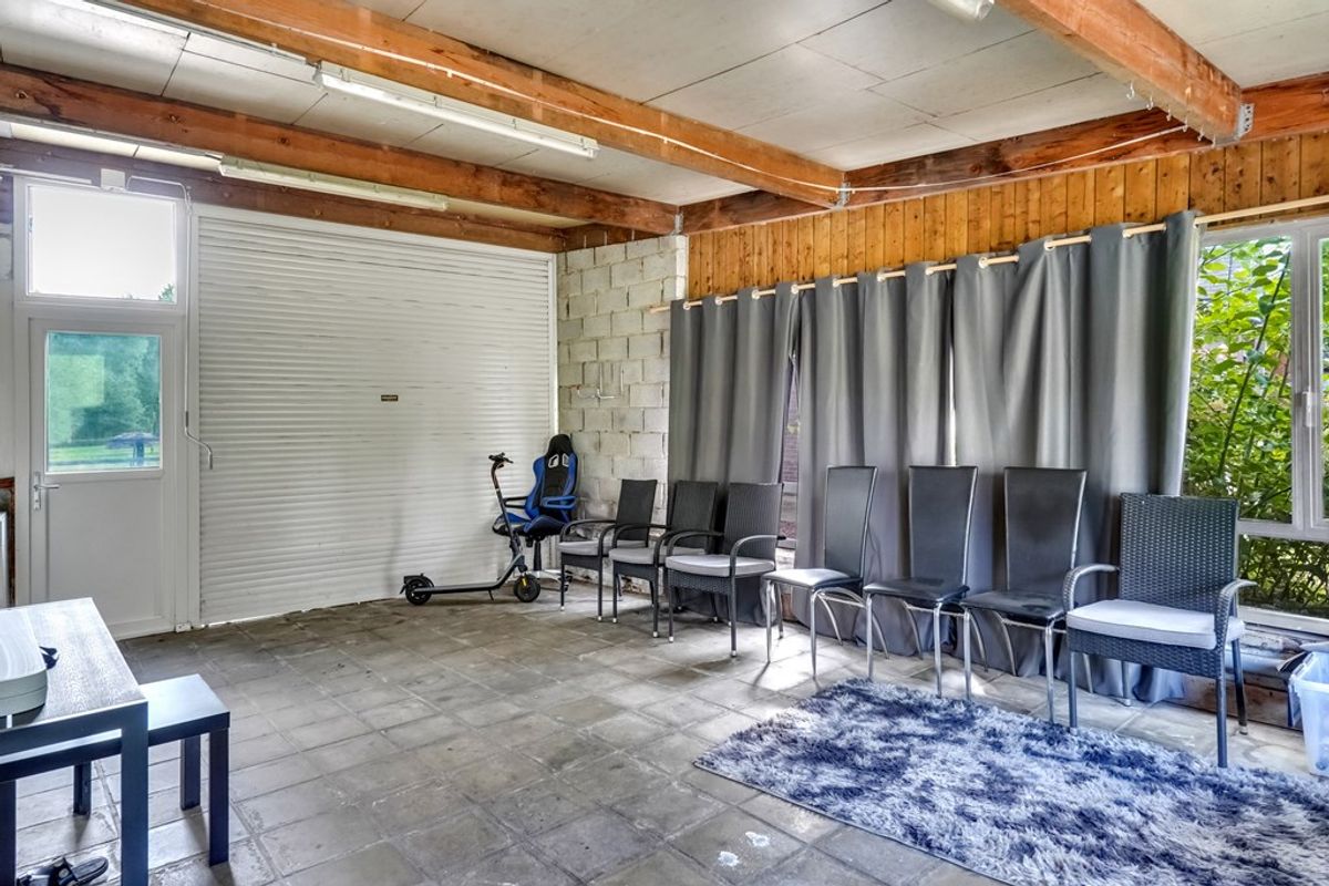 De woning beschikt over een praktische indeling met op het gelijkvloers de inkomhal, ruime woonkamer, inbouwkeuken, badkamer en een inpandige garage voor meerdere wagens.