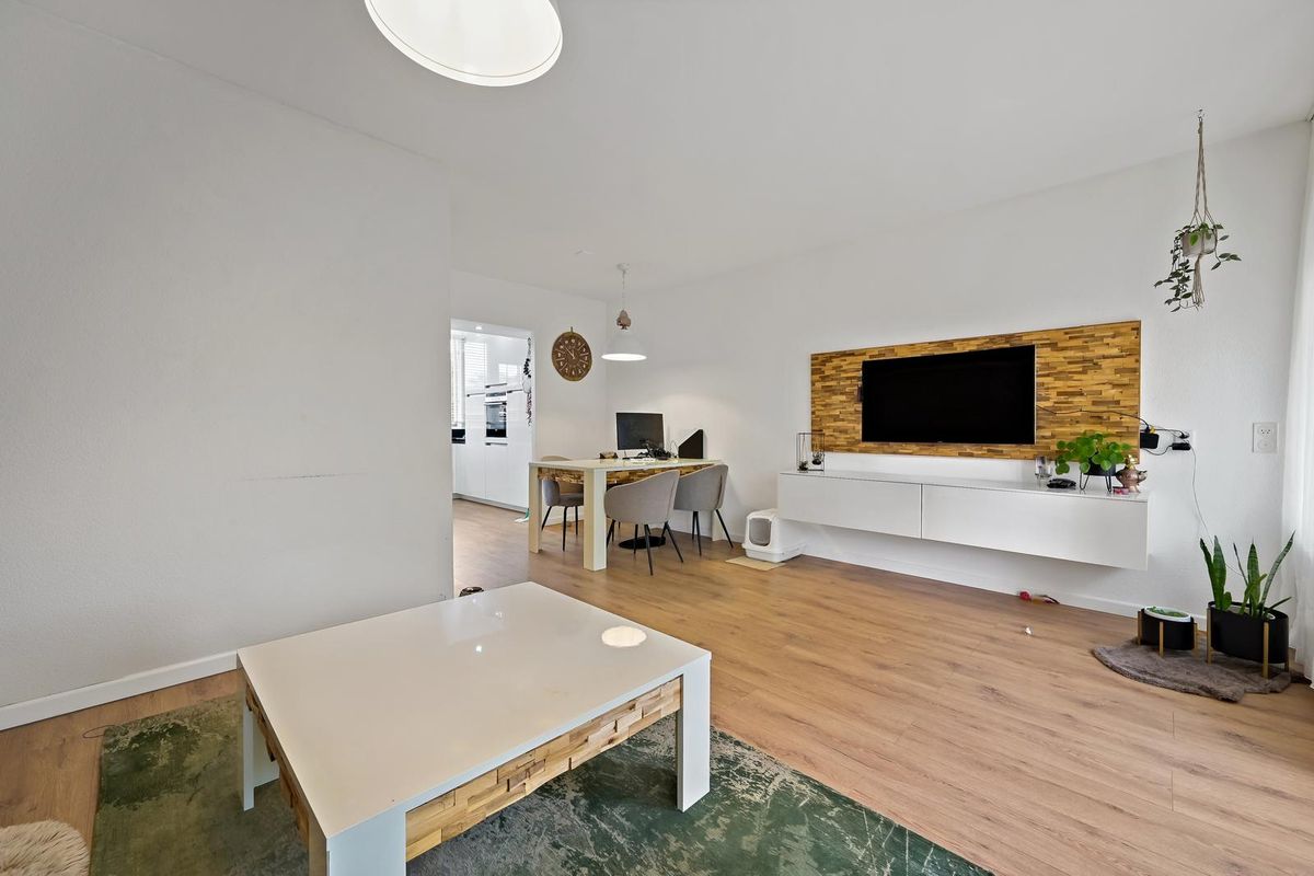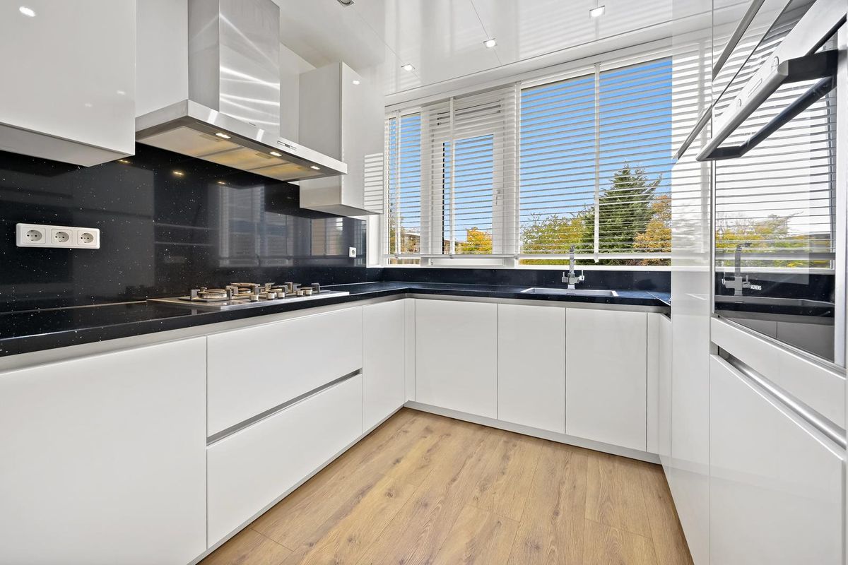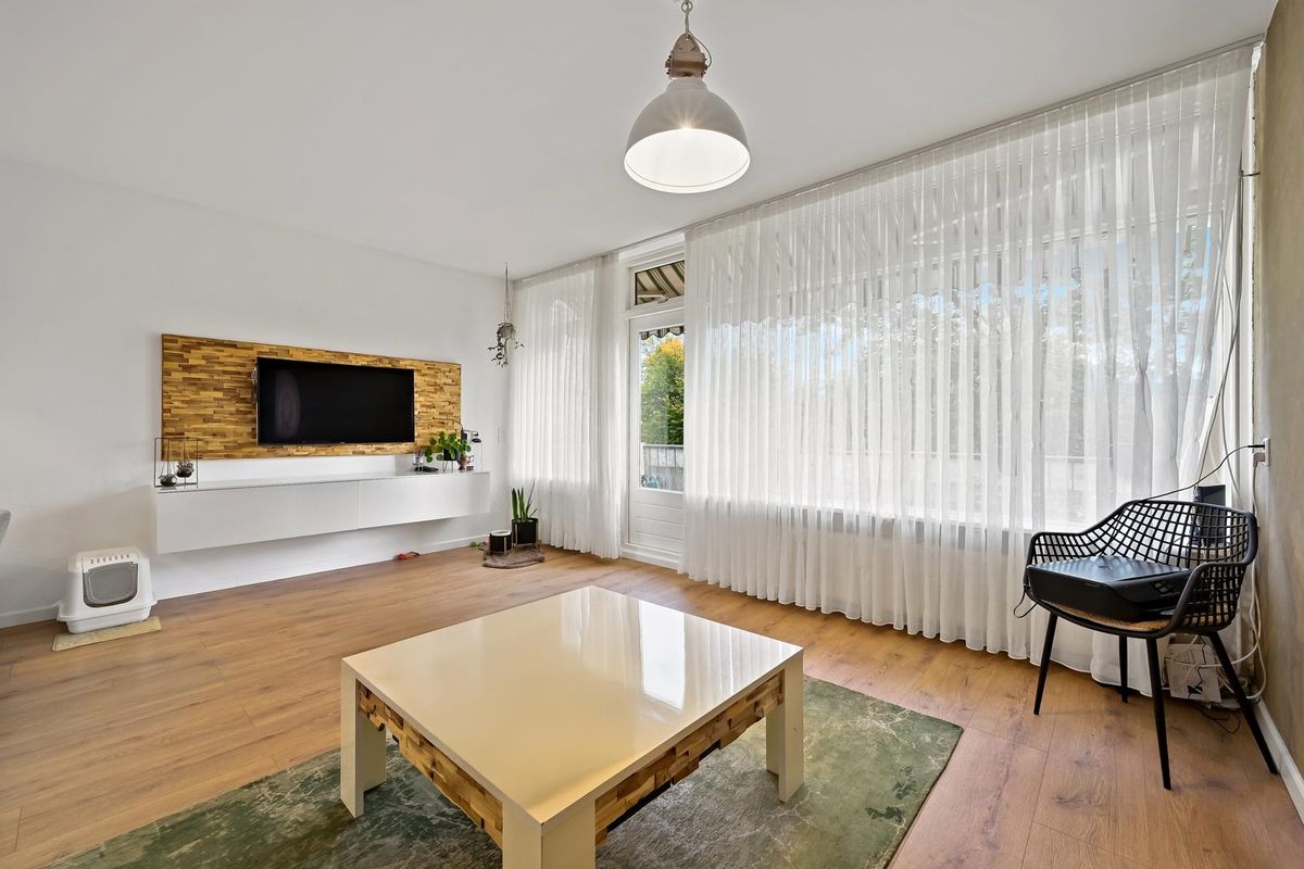 De lichte woonkamer straalt een warme sfeer uit en grenst aan het balkon op het oosten – een heerlijke plek om in de ochtendzon te genieten van een kop koffie. De moderne halfopen keuken, uitgevoerd in wit en voorzien van een strak werkblad, vormt het hart van de woning en is perfect voor wie graag kookt.