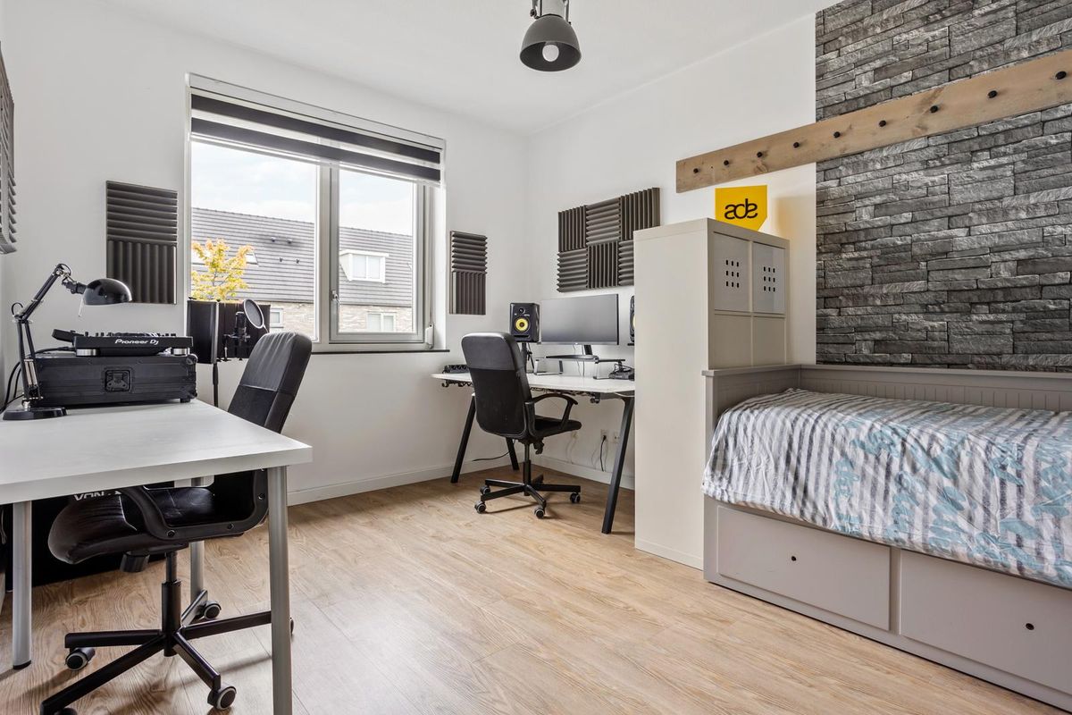 De zolderverdieping is volledig ontwikkeld en biedt een royale zolderkamer, een aparte stook- en wasruimte en een overloop. Daarmee is dit een ideale extra verdieping voor een thuiswerkplek, hobbykamer of vierde slaapkamer.