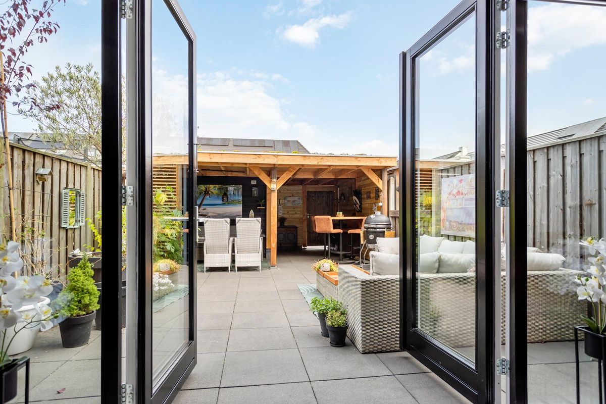 De achtertuin is een heerlijke plek om te ontspannen: verzorgd aangelegd, met achterin twee eigen parkeerplaatsen, een stenen berging en een overkapping. Aan de voorzijde ligt bovendien een gezamenlijk tuin/hofje, waarvan de bewoners mede-eigenaar zijn – een fijne plek om samen te genieten van het groen.