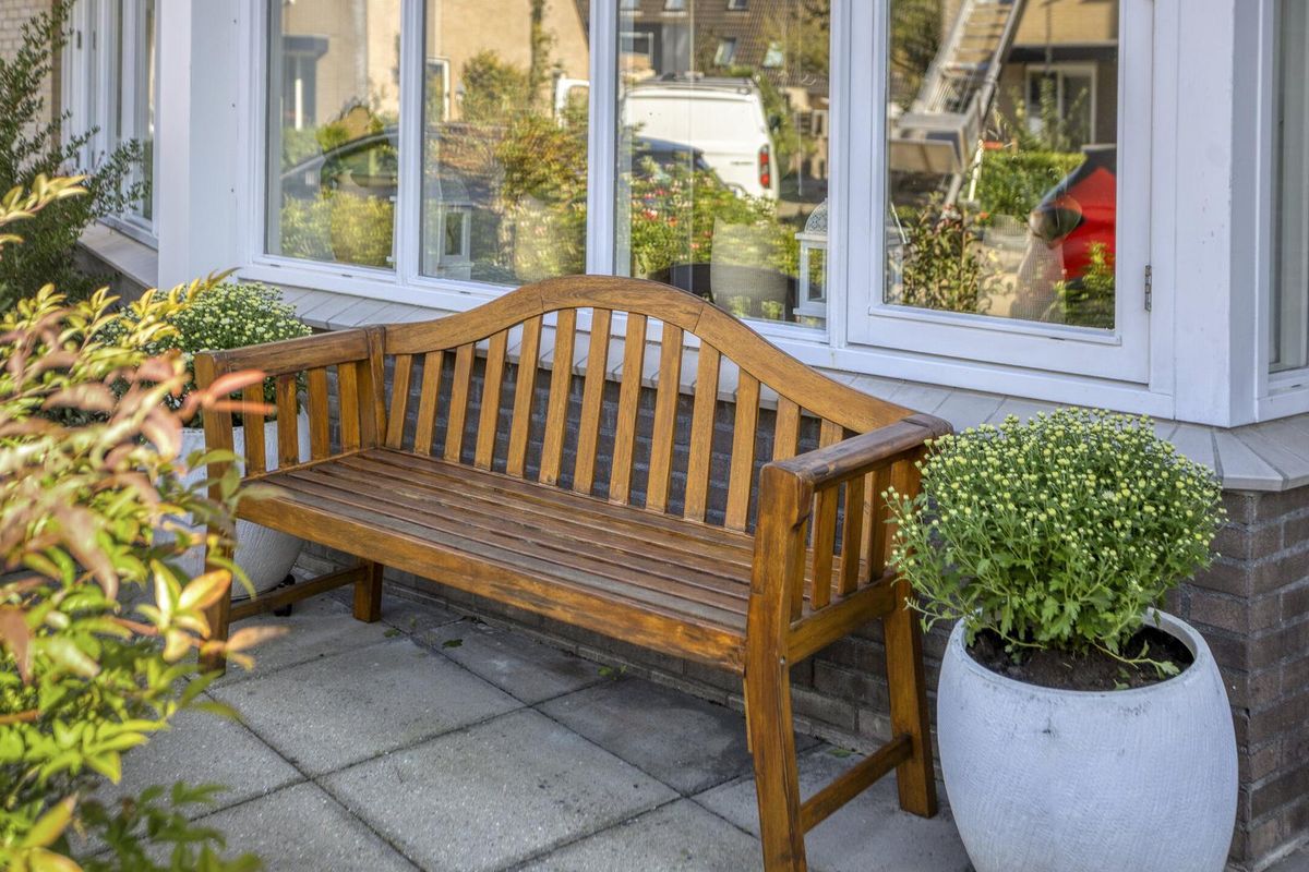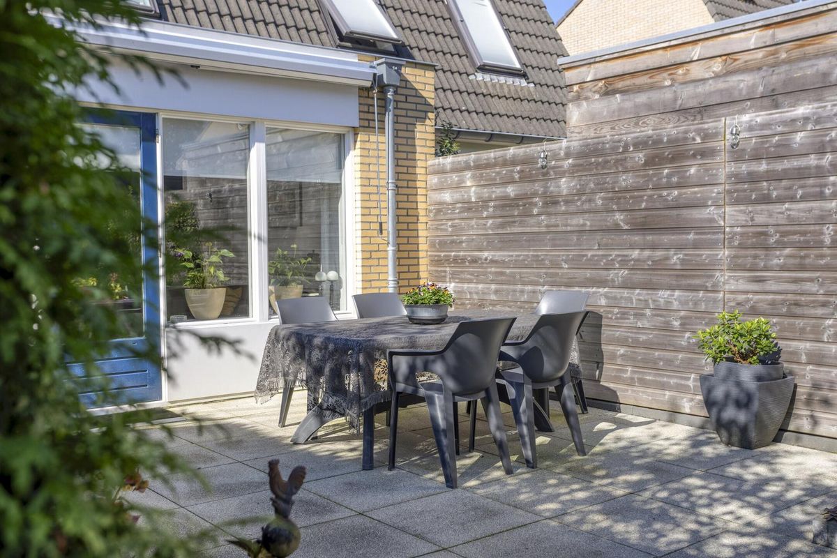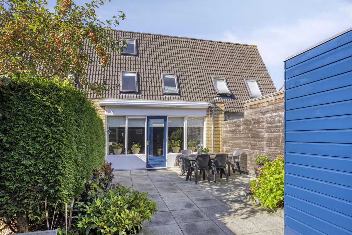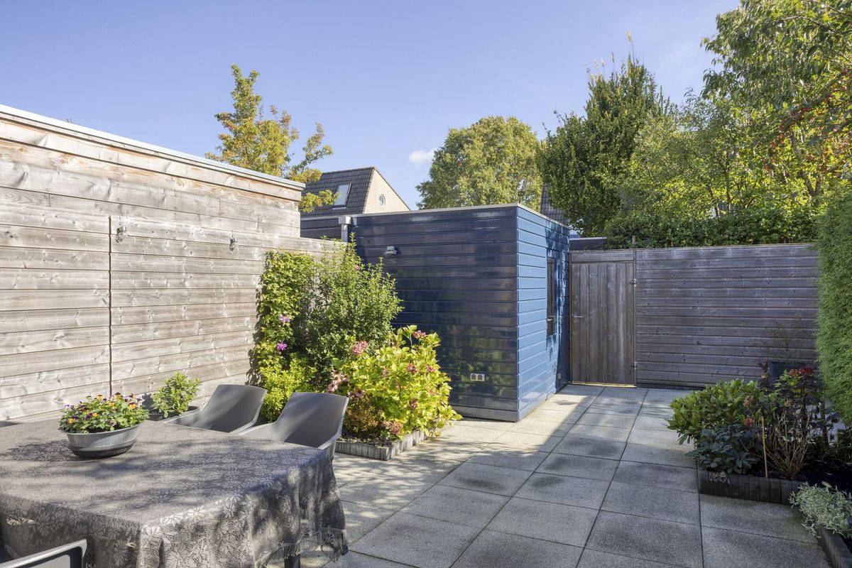De achtertuin is keurig aangelegd en door de ligging op het noordoosten kun je in de zomer zowel in de zon of schaduw plaatsnemen. In de tuin staat een vrijstaande houten schuur en er is een achterom aanwezig.