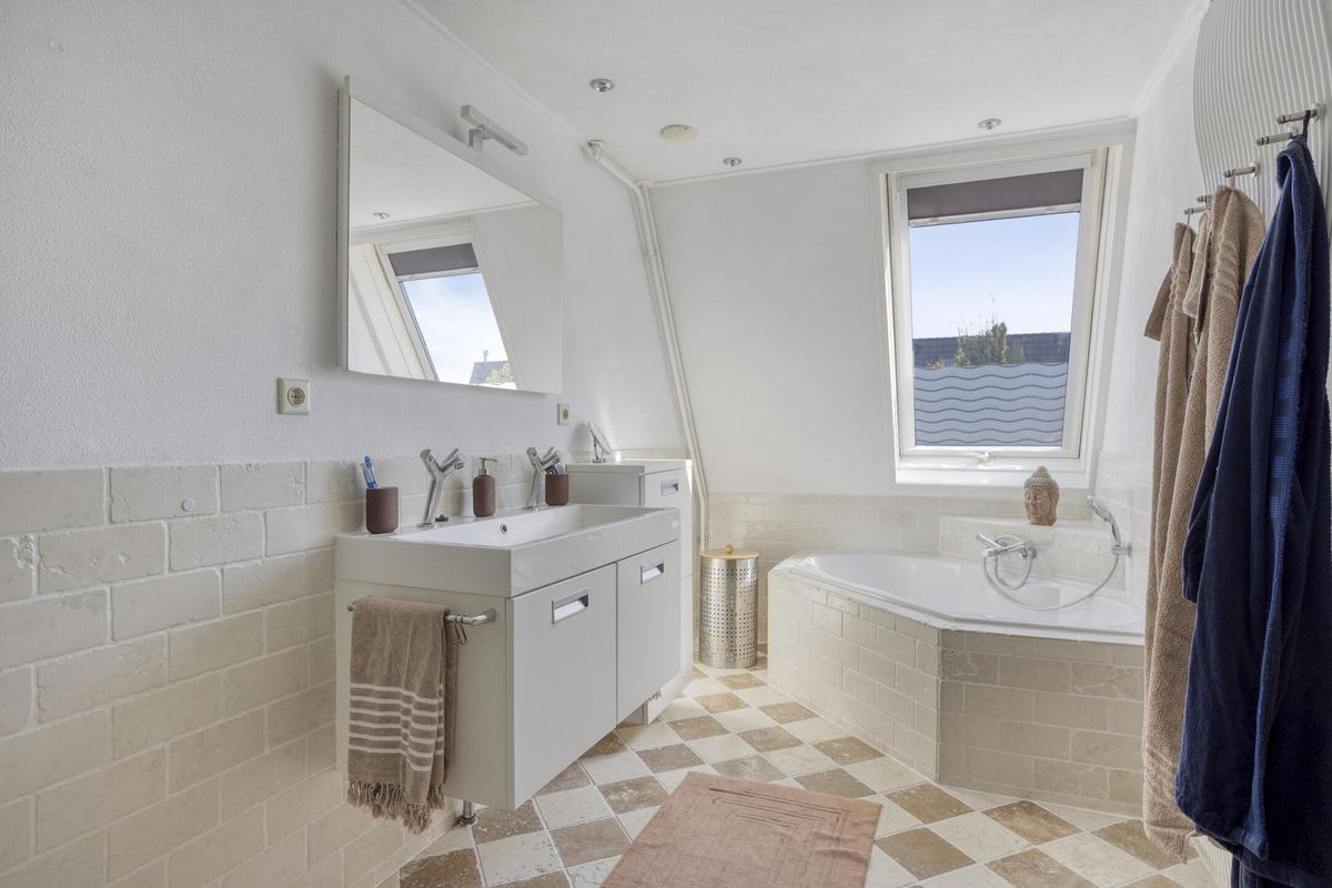 Eerste verdieping: overloop, 2 mooi bemeten slaapkamers. De vergrote badkamer is voorzien van een ligbad, douchecabine, dubbel wastafelmeubel en toilet.