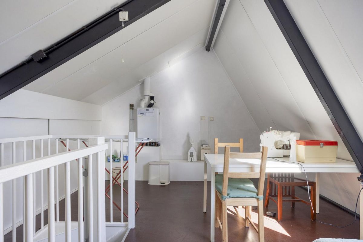 De zolder is bereikbaar via een vaste trap. Nu is de zolder een open ruimte, maar er kan heel goed een slaapkamer gerealiseerd worden. Op de zolder bevindt zich de cv-ketel en de aansluiting voor de wasmachine. Achter de knieschotten is er veel bergruimte.