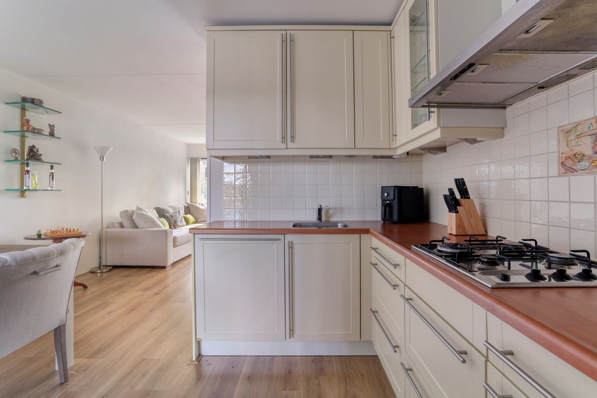 De keuken zelf is voorzien van een houten werkblad, moderne apparatuur en inbouwspots. In 2020 zijn de koel/vries combinatie en vaatwasser vervangen.