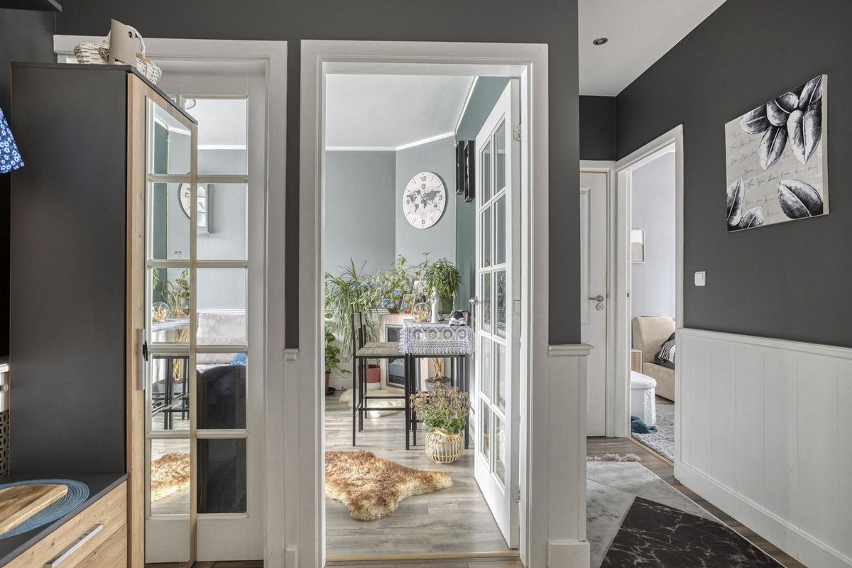 De entree aan de straatzijde leidt naar de hal die fungeert als het centrale punt van de woning. Hier vindt u toegang tot alle vertrekken, met voldoende plek voor een kapstok of een stijlvol opbergmeubel. De praktische indeling van de hal zorgt voor een prettige eerste indruk en een gevoel van ruimte zodra u binnenkomt.