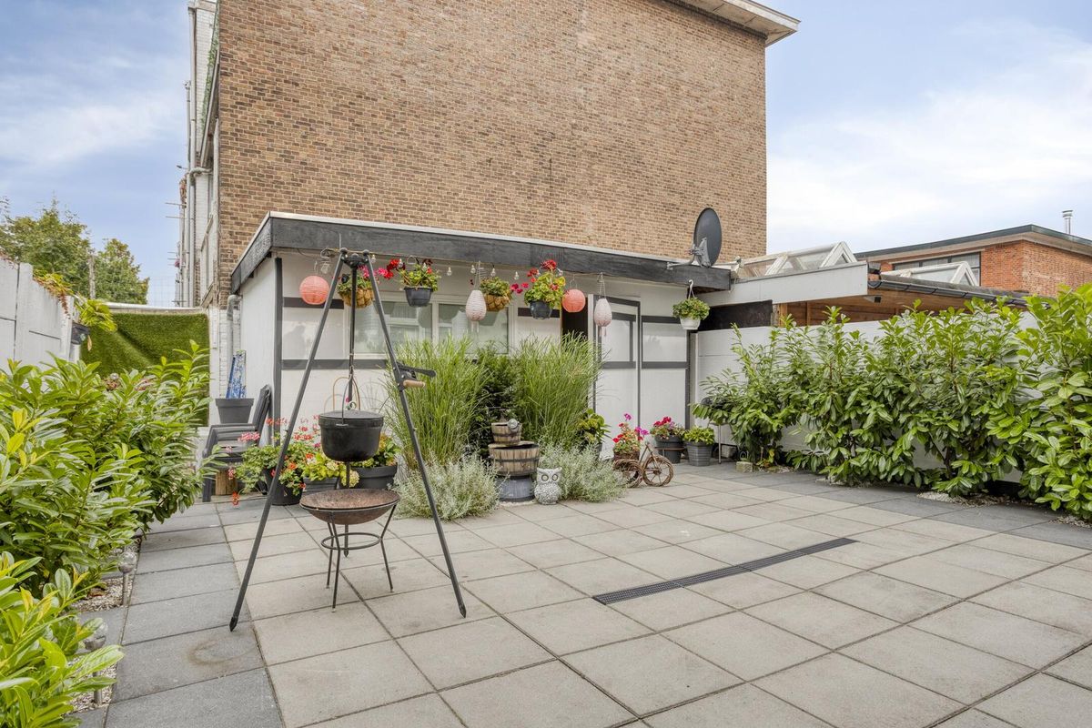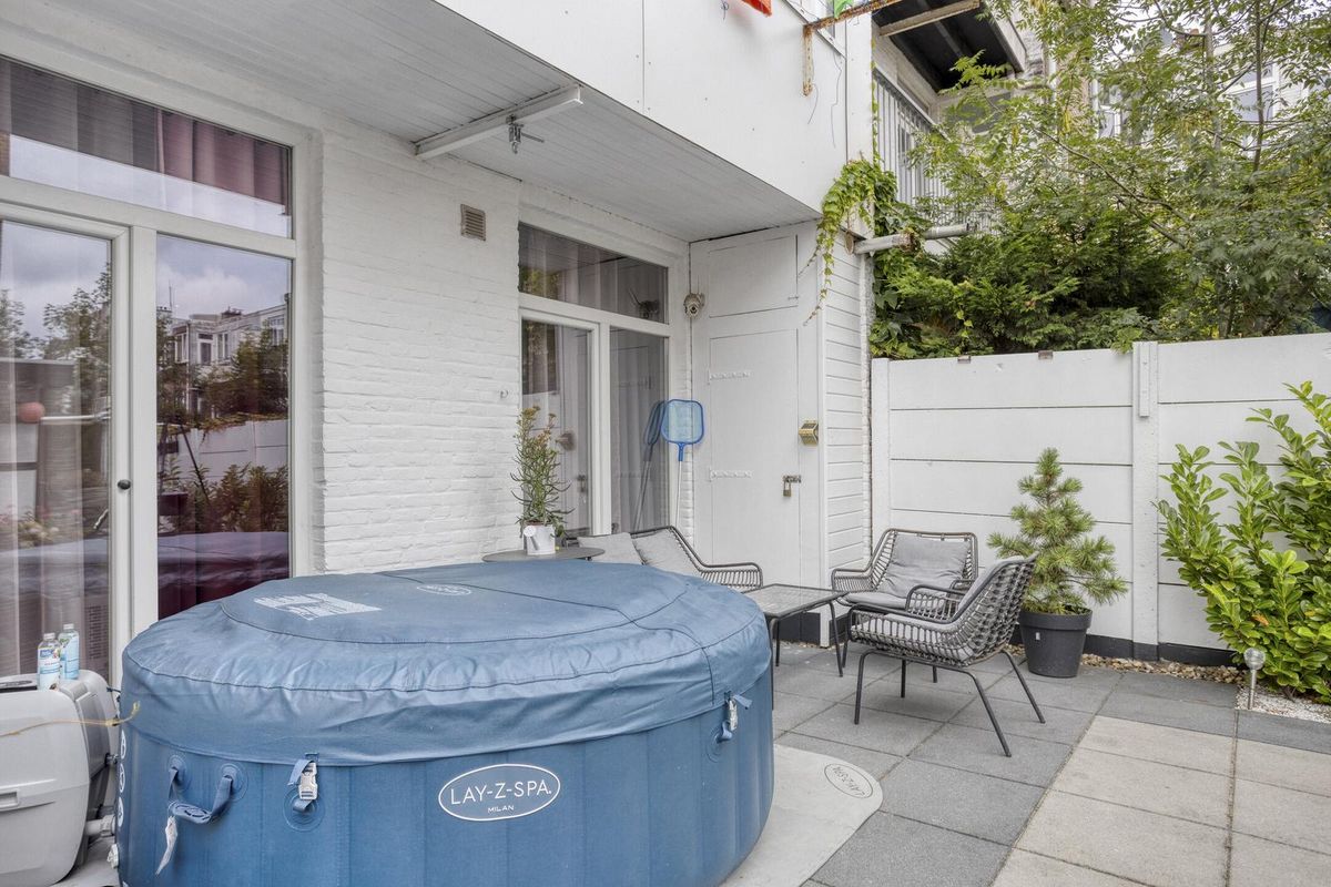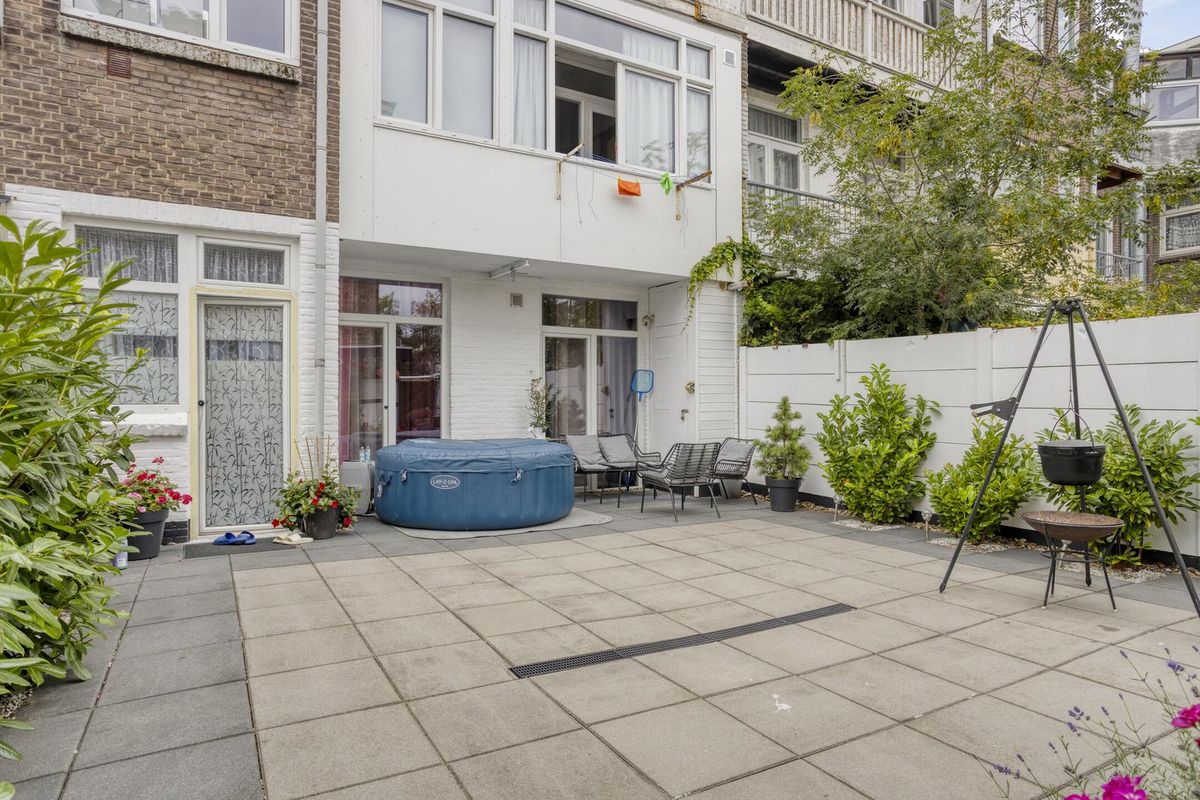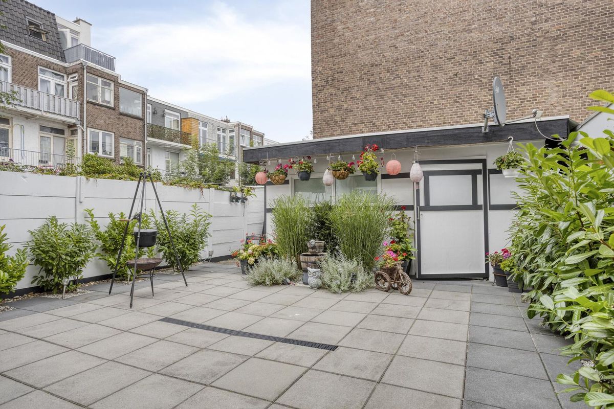 Vanuit de keuken en slaapkamers betreedt u de achtertuin. Deze is zonnig en onderhoudsarm dankzij de bestrating. De tuin biedt ruimte voor een terras of loungeset, terwijl het aanwezige groen de tuin toch een sfeervolle uitstraling geeft. Achterin bevindt zich een tuinhuis, ideaal als extra bergruimte voor tuinspullen, fietsen of seizoensgebonden items. Hier geniet u optimaal van het buitenleven in uw eigen stadstuin.
