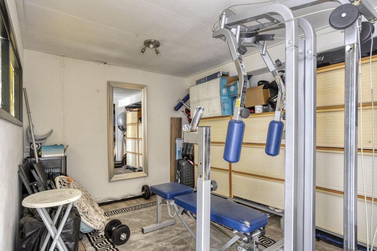 Een berging grenst eveneens aan de hal en beschikt over een aansluiting voor witgoed. Hiermee wordt er gezorgd voor een praktische en efficiënte plek om wasmachine en droger te plaatsen.