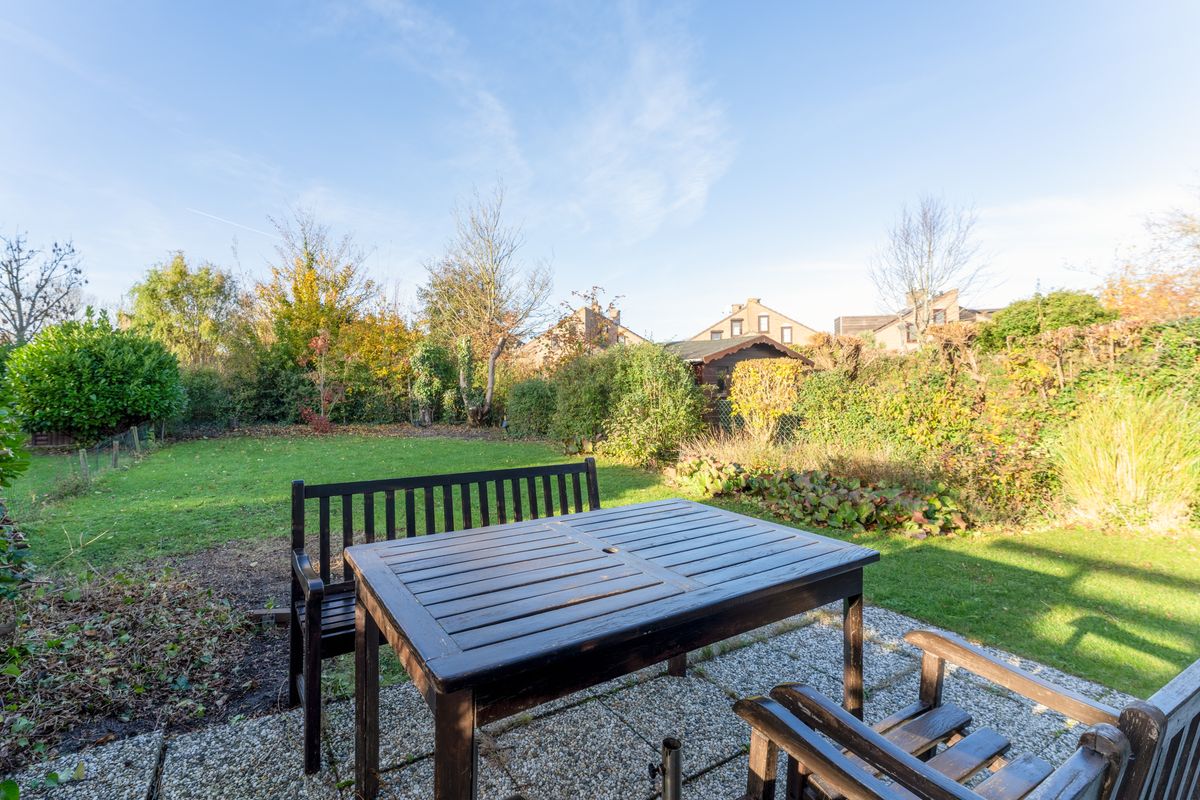 De tuin rondom de woning is een van de grootste verrassingen. Vanuit de woonkamer stap je via de schuifpui zo het terras op, waar je direct merkt hoe rustig en besloten het hier ligt. De achtertuin strekt zich opvallend ver naar achteren uit – iets wat prachtig te zien is op de dronebeelden – en wordt omringd door groen, waardoor je volop privacy ervaart. De zon draait de hele dag mee over het perceel, waardoor er altijd wel een plek is om te zitten: in de ochtend met een kop koffie bij de achtergevel, of ’s avonds op het terras verderop in de tuin terwijl de zon langzaam zakt.