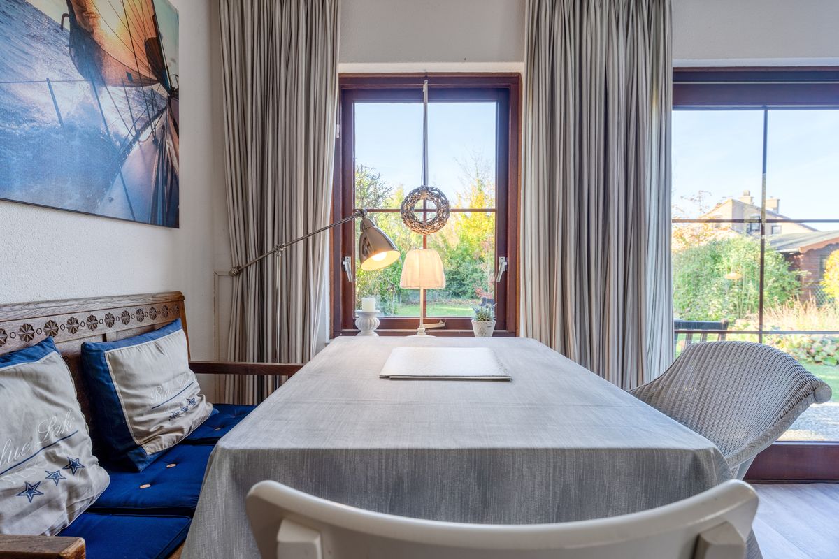 De lichte woonkamer is ruim opgezet, zoals op de foto’s duidelijk te zien is. Dankzij meerdere ramen, een schuifpui richting de tuin en de open verbinding met de keuken voelt de ruimte uitnodigend en warm aan. De aanwezige open haard maakt dit tot een heerlijke plek om te ontspannen na een strandwandeling.