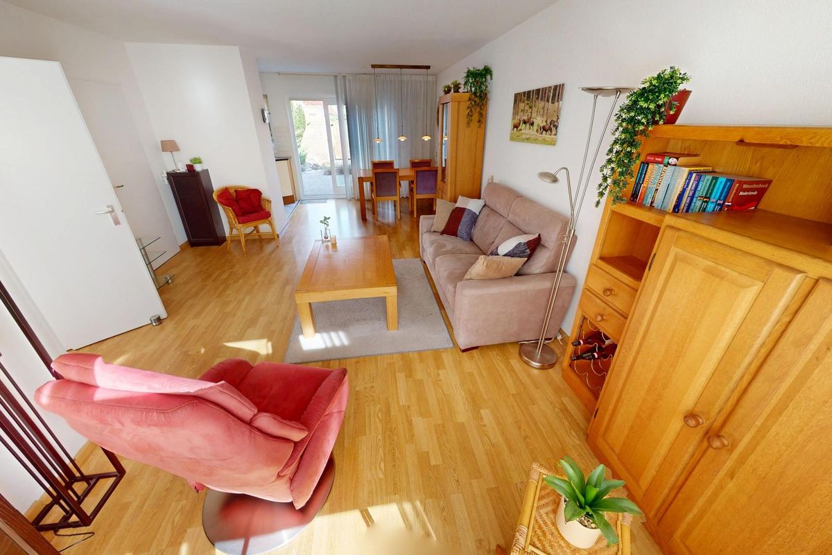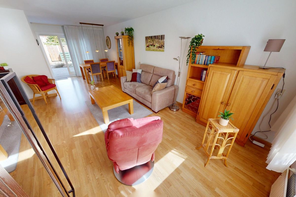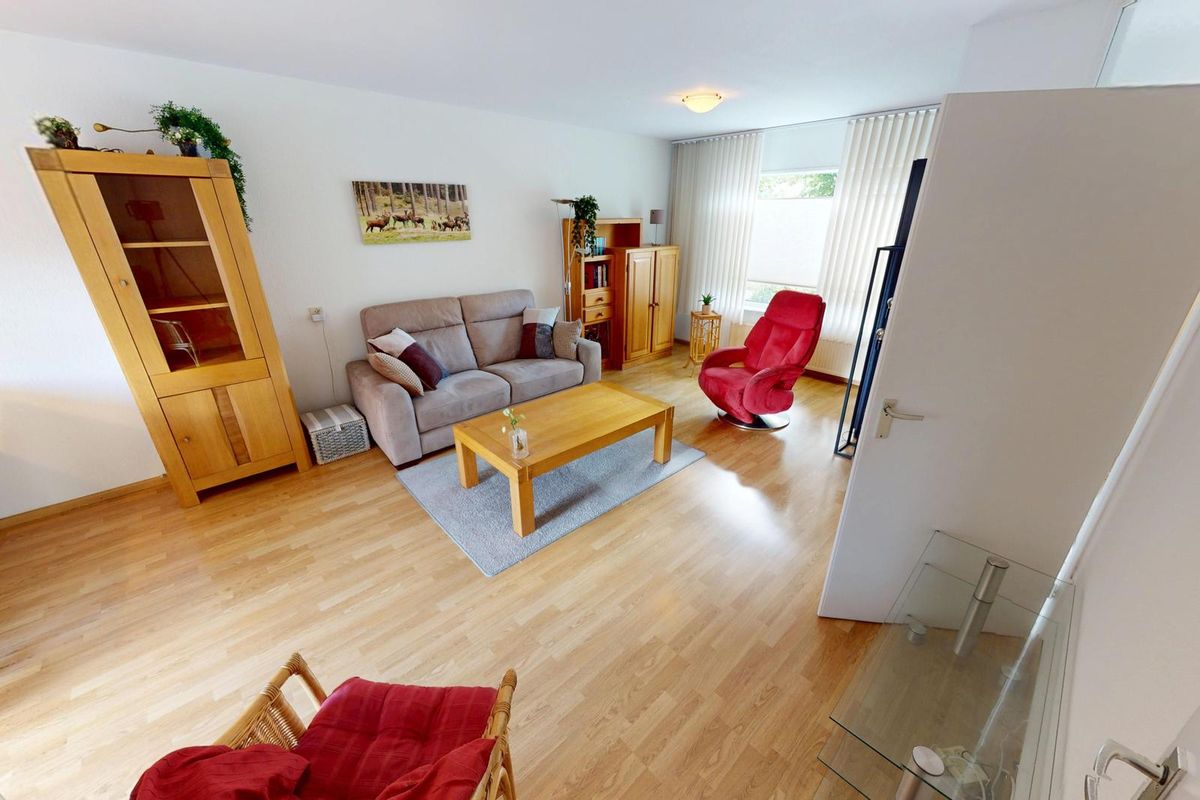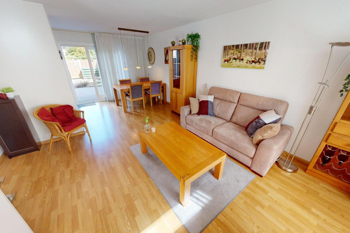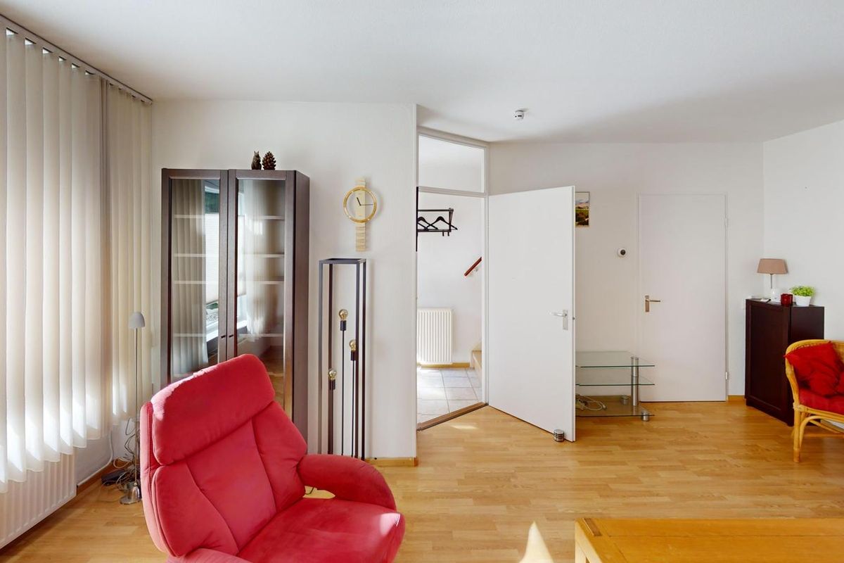 Vanuit de hal kunt u de L-vormige woonkamer bereiken. Door de grote raampartij aan de voorzijde van de woning heeft u veel lichtinval in de woning. U heeft hier de mogelijkheid om een lekkere loungebank te plaatsen. Vanuit de bank heeft u dan fijn zicht op de straat aan de voorzijde. Halverwege de woonkamer is een vaste kast aanwezig. Ideaal om als een extra opbergruimte te gebruiken. Aan de achterzijde van de woning treft u naast de open keuken, ook een schuifpui aan wat een fijne overgang naar de tuin verzorgd.