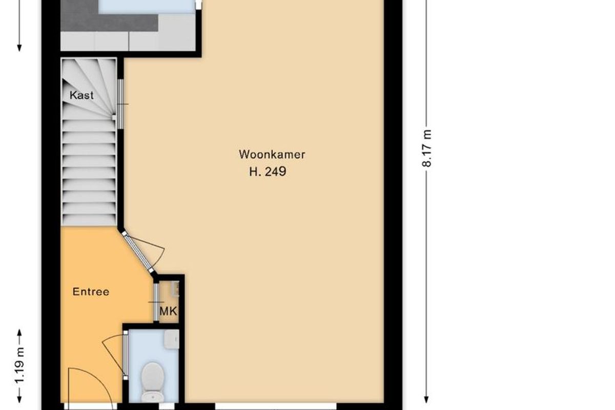Begane grond: via de entree aan de voorzijde komt u in de hal met toegang tot meterkast, functionele toiletruimte met closet en fonteintje en de trapopgang naar de 1e verdieping.