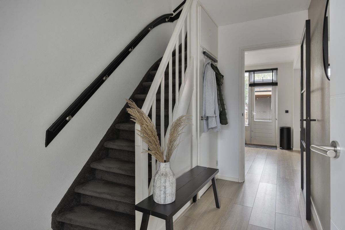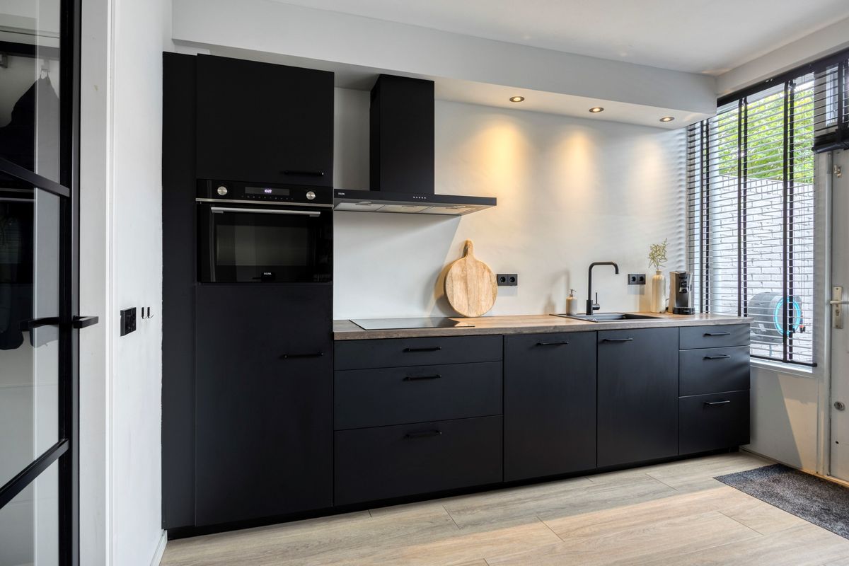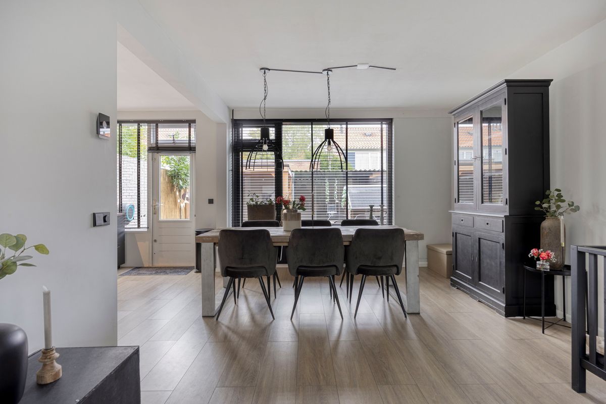 Via de entree met portaal stap je de hal in, waar je de meterkast, trapkast en toiletruimte met zwevend toilet vindt. De woonkamer is ruim en strak afgewerkt met glad gestucte wanden en plafond. Aan de straatzijde bevindt zich het zitgedeelte met prettig lichtinval; aan de tuinzijde is ruimte voor een grote eettafel. De open keuken is in 2022 vernieuwd en voorzien van een moderne inbouwkeuken met apparatuur. Dankzij de doorbraak naar de woonkamer is er een mooie open ruimte ontstaan, waardoor de begane grond licht en ruimtelijk aanvoelt.